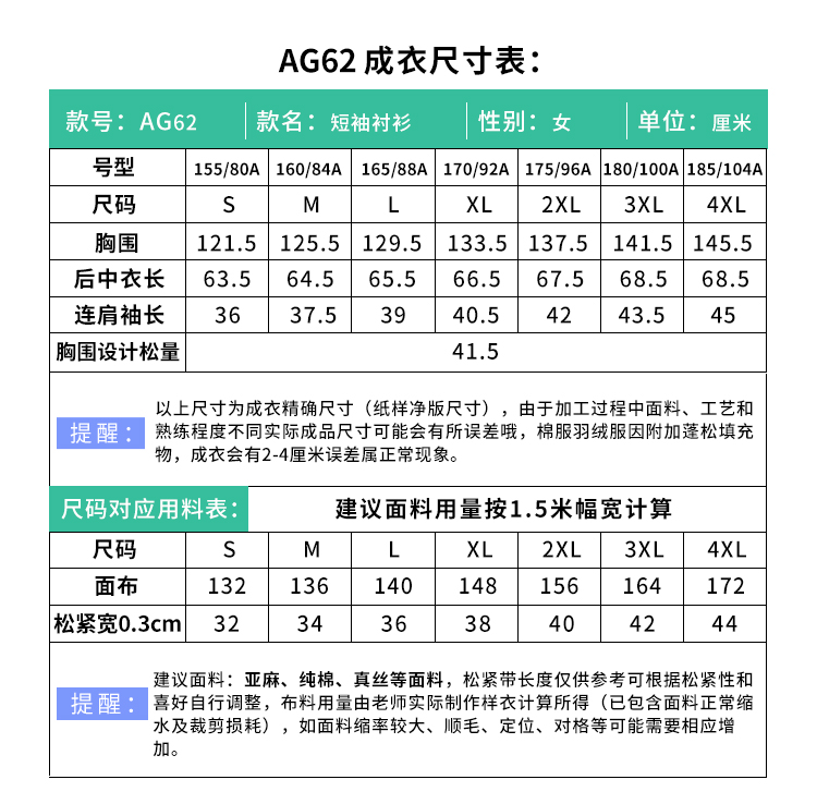 裁缝学苑 AG62复古文艺衬衫宽松短袖港风女士衬衣服装纸样裁剪图