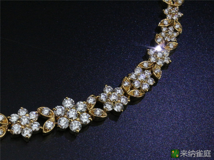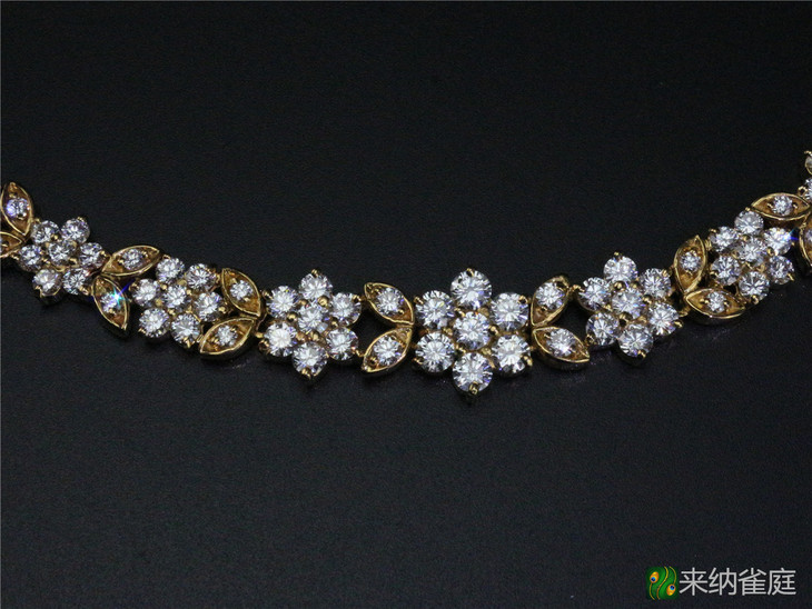 钻石总重: 9.42克拉 钻石数量:121粒 | 黄金重量:22.13克 手链长度:17.5cm |