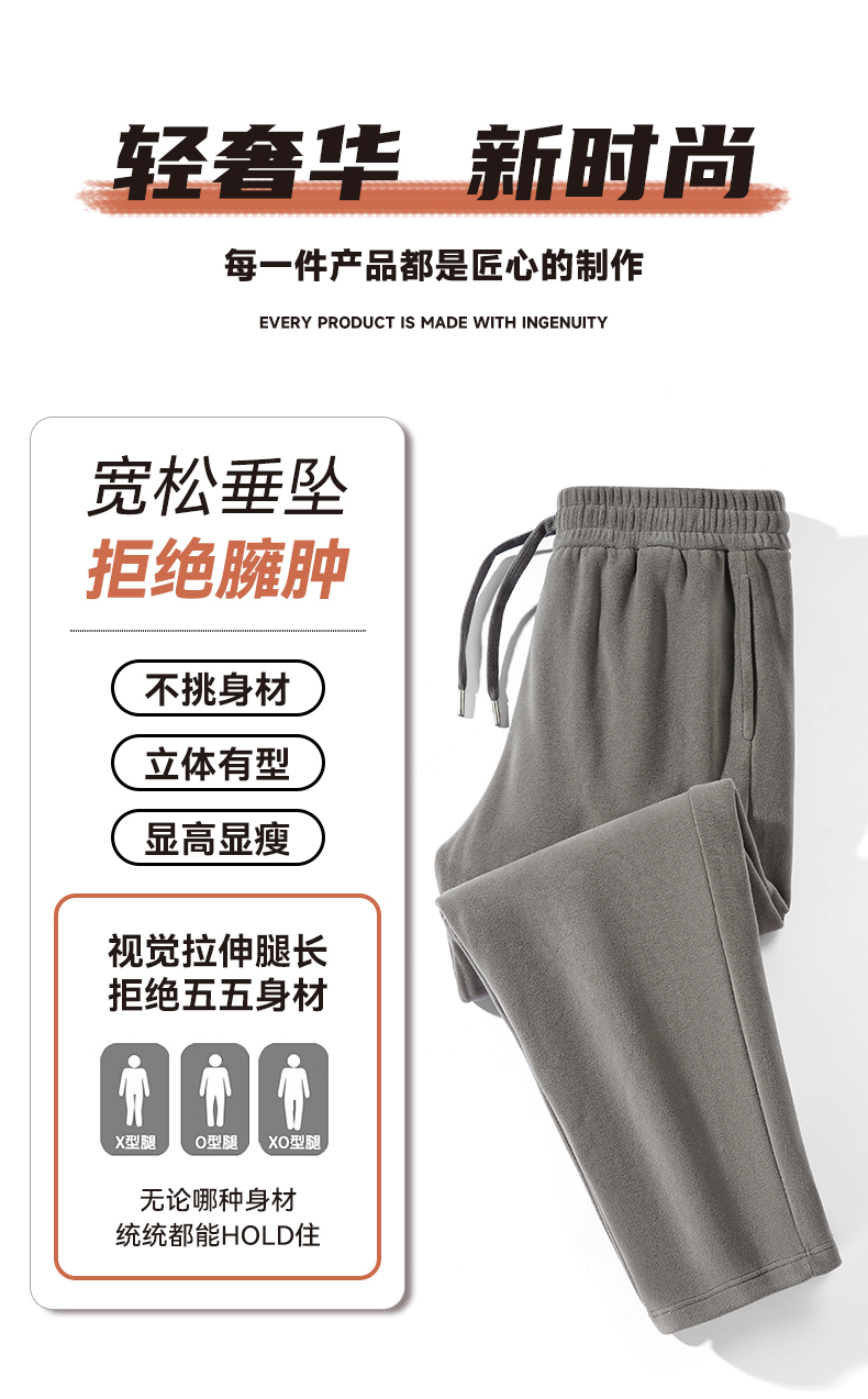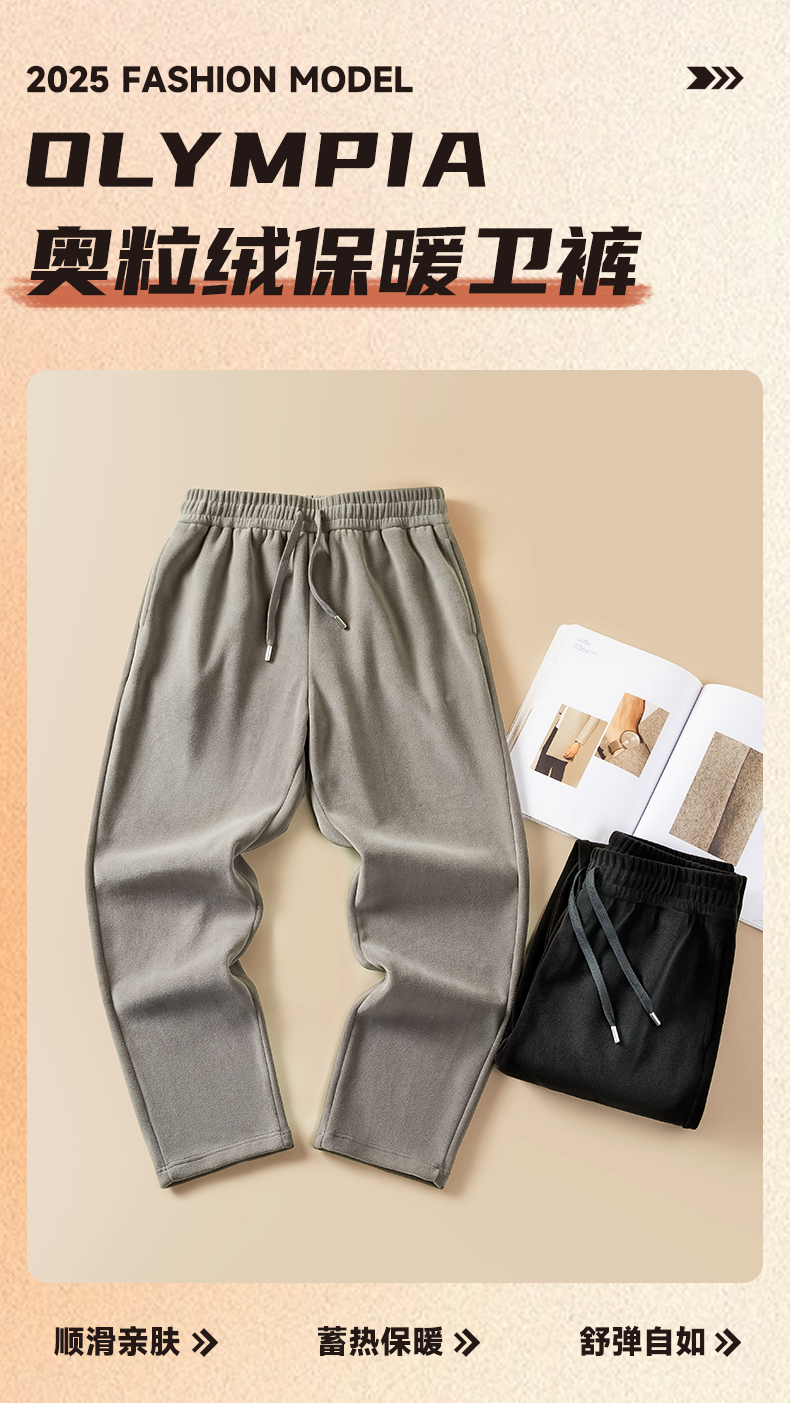 【奥粒绒加厚卫裤】占姆士男女同款双面奥粒绒直筒裤男女秋冬加绒加厚男士宽松保暖外穿长裤