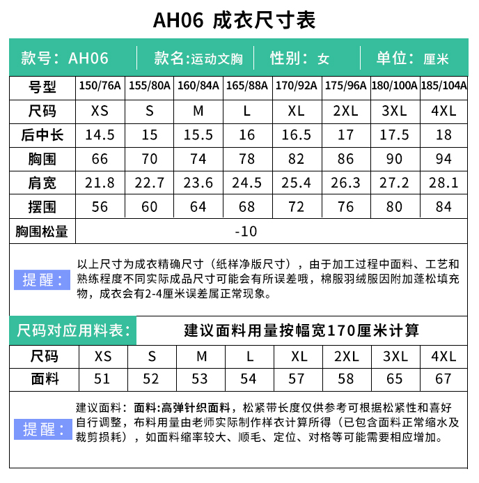 裁缝学苑AH06一体式运动内衣纸样女装前拉链文胸背心样板图纸