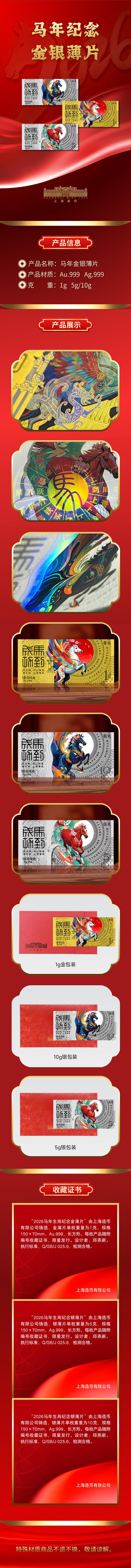 【上币发行】2026丙午马年贺岁纪念金银卡 足金足银