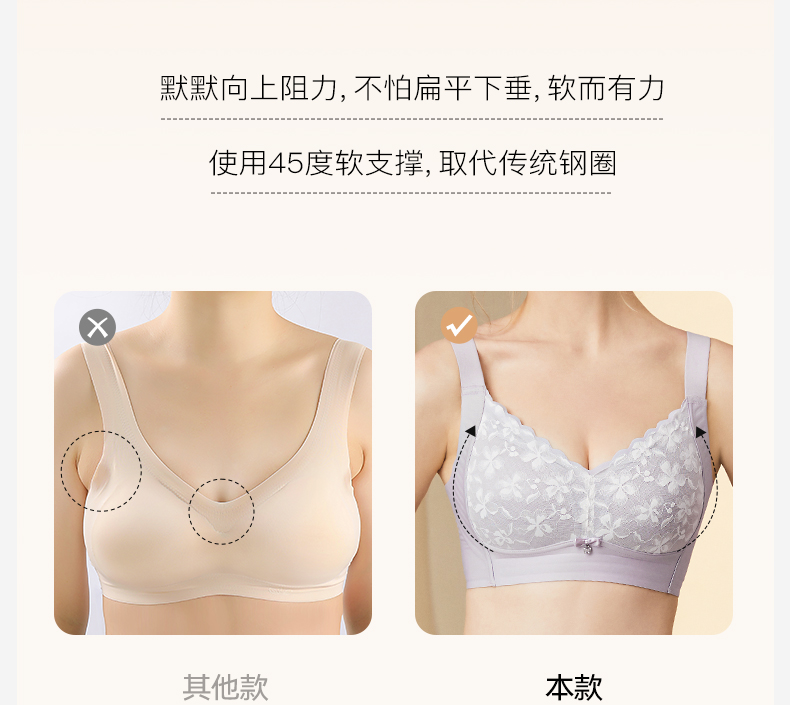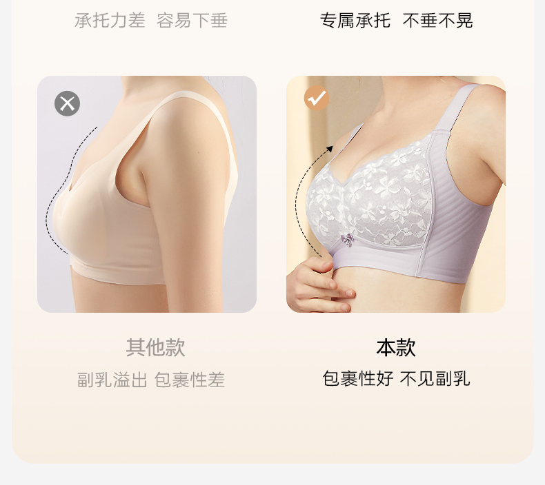 梦芭蒂内衣女大胸显小胸薄款无痕无钢圈收副乳大码文胸罩云感提拉