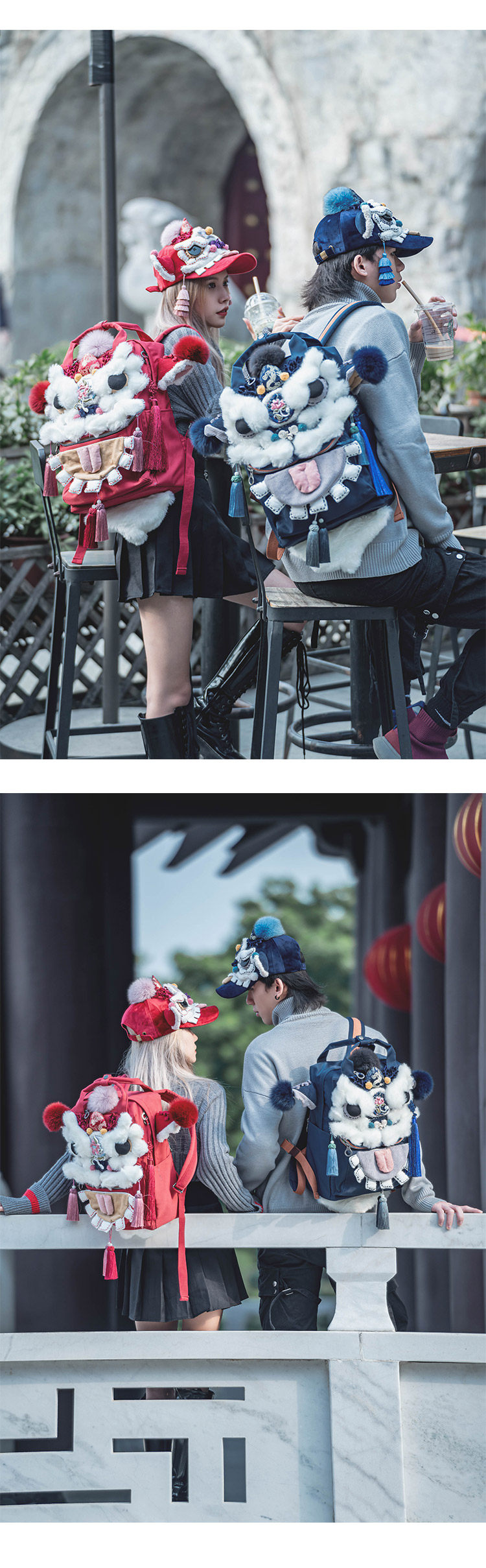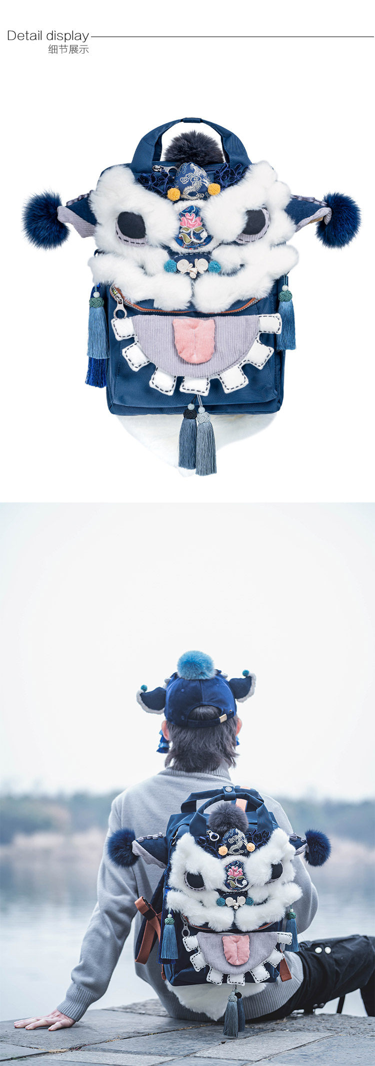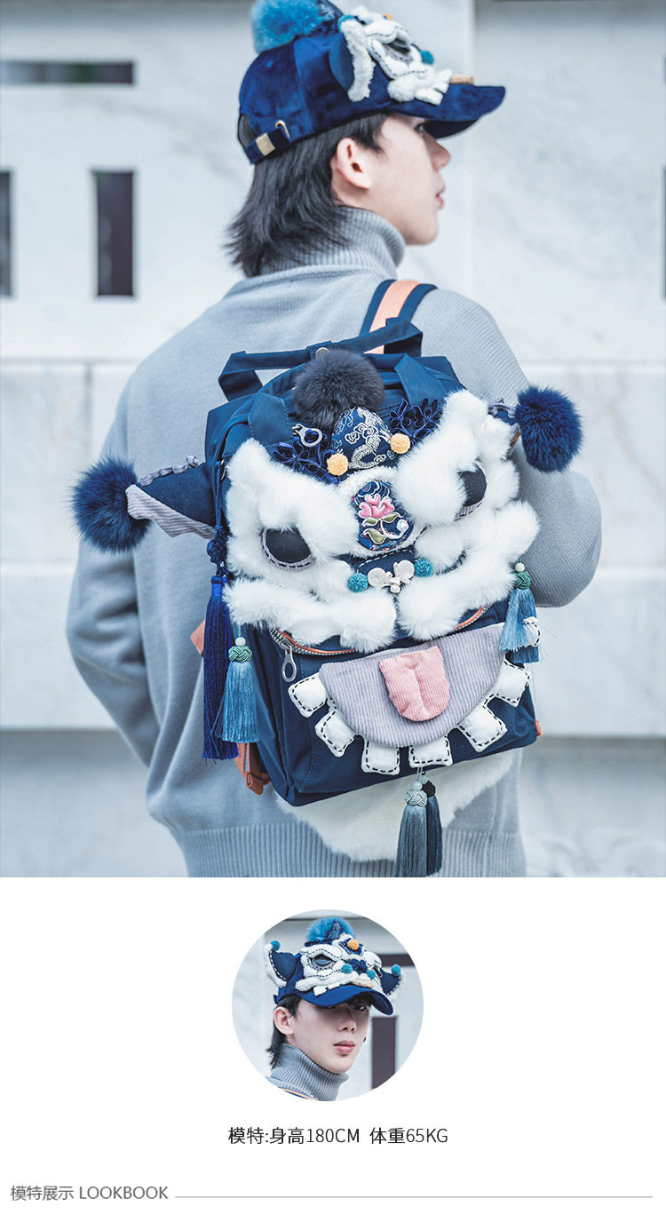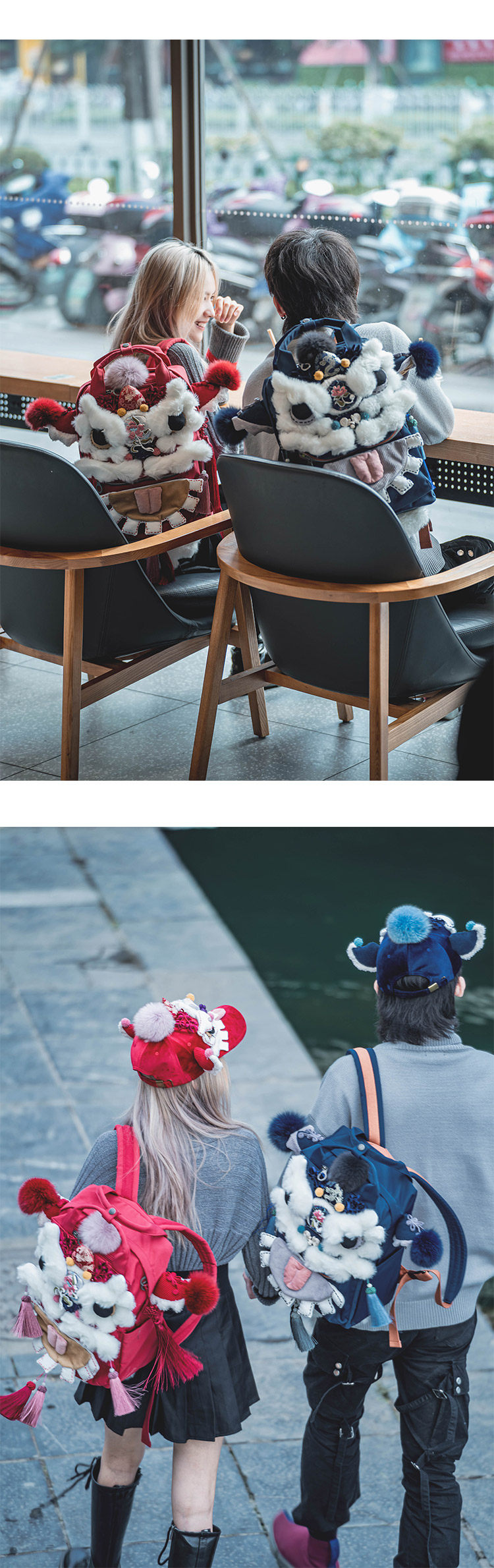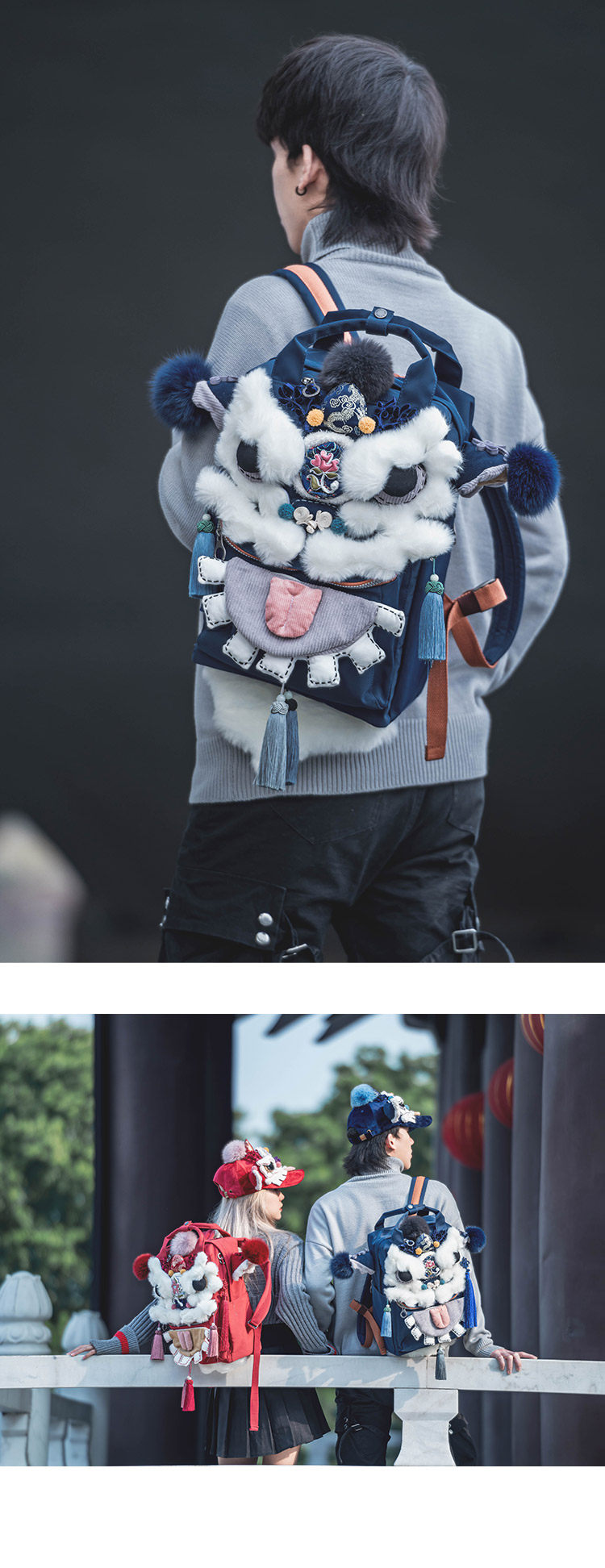 【1.21-2.6停发】芽小七原创手工醒狮双肩包舞狮书包大容量小众背包笔记本包旅行包