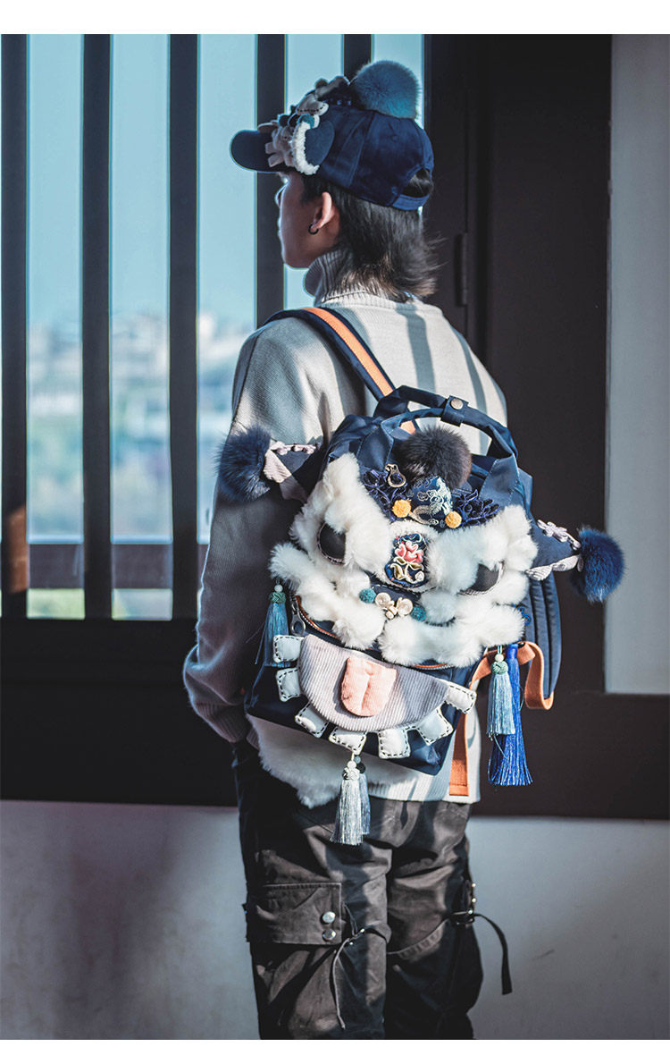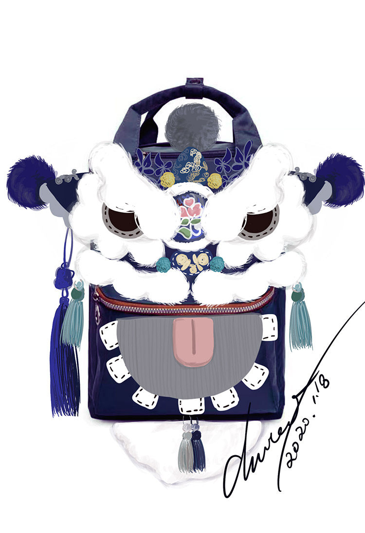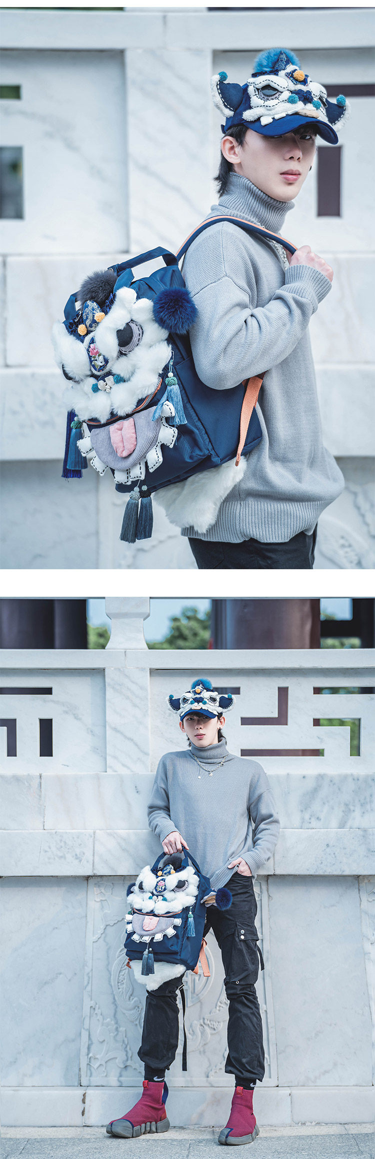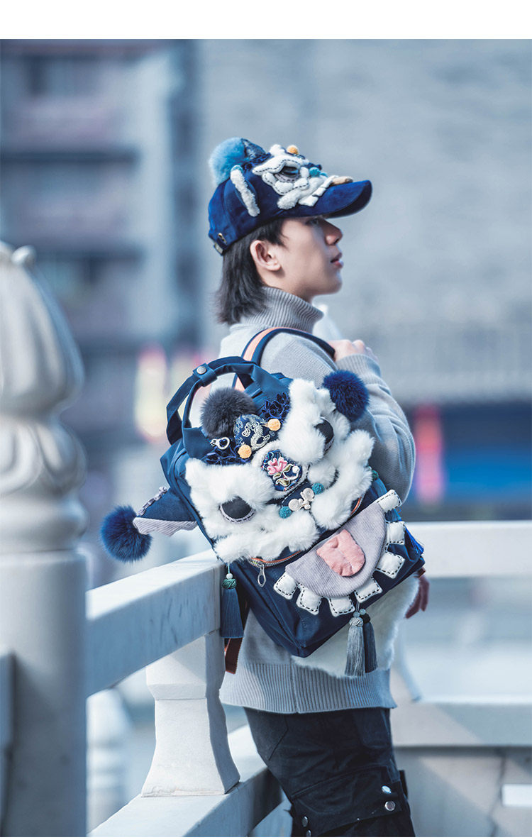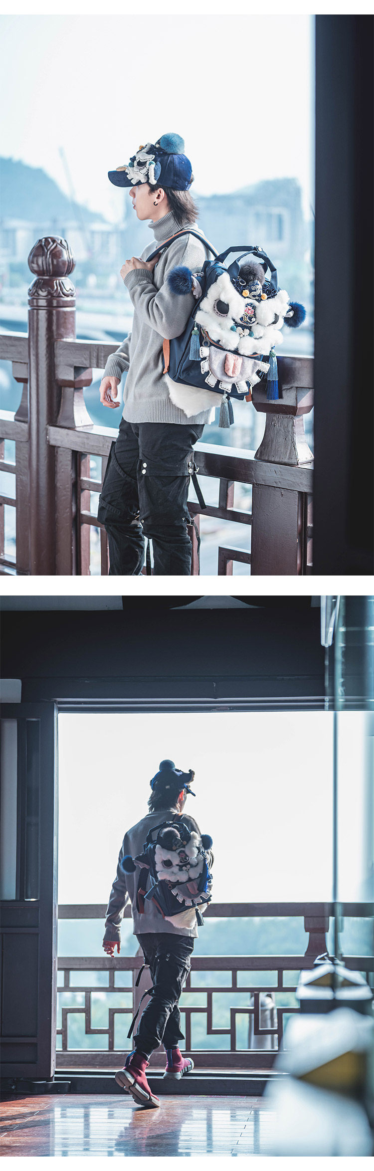 【1.21-2.6停发】芽小七原创手工醒狮双肩包舞狮书包大容量小众背包笔记本包旅行包