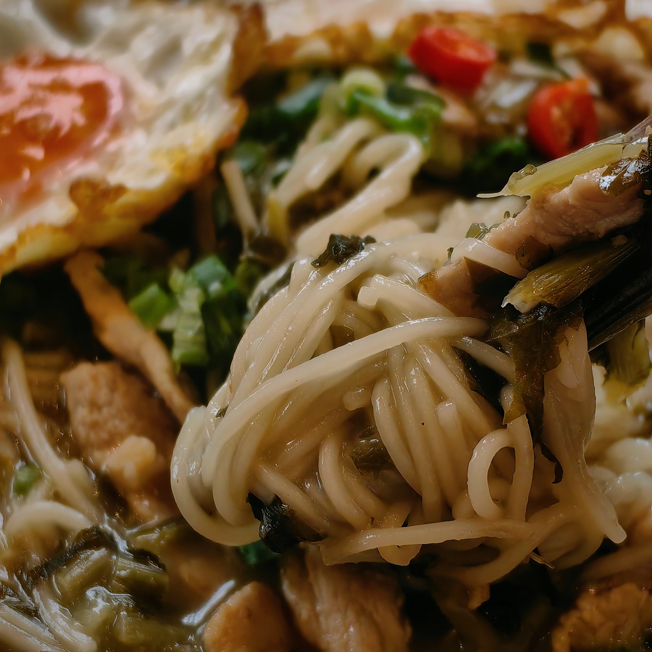 包装就很简单,尤其是成人版,就是个传统筒装,儿童版倒是有可爱小袋袋!每次取适量,水开了煮煮就行,煮熟的面也不容易坨,汤也很清,捞出后随便加个鸡蛋,抓一把青菜,来点酱油蚝油,做成清汤面就能吃出它的美味,我还加了点金钩海米,真的鲜!如果是用点心,也可以来一碗雪菜肉丝面,每一根面面都挂汁,带着浓浓的香味,细嚼还有一丝丝百合的清甜,非常推荐了!