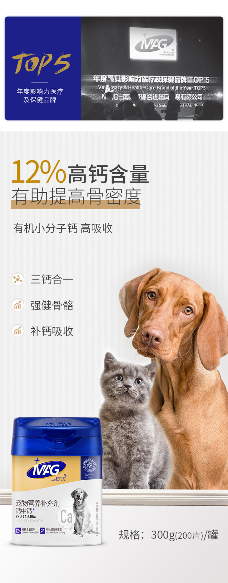 【MAG钙中钙犬用300G】幼犬老年犬有机小分子高质钙高含钙量高吸收