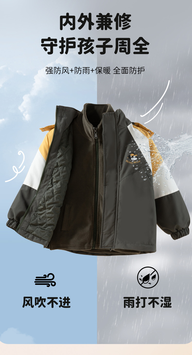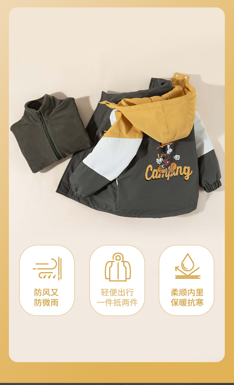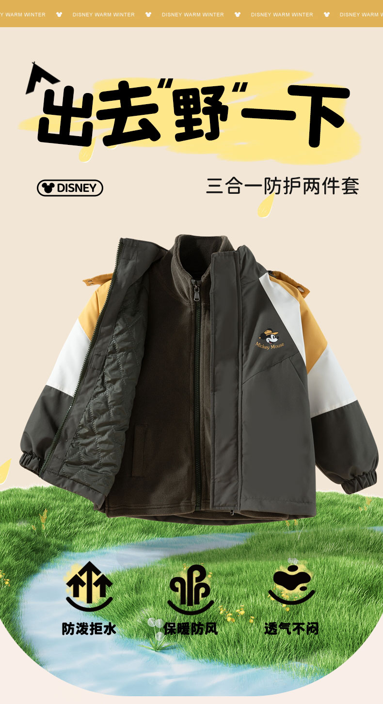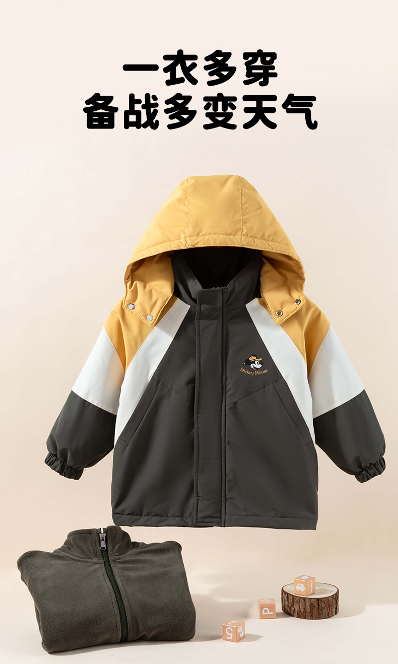 迪士尼【一衣三穿】24年秋冬款男童休闲运动保暖耐磨外套ZD3DS022
