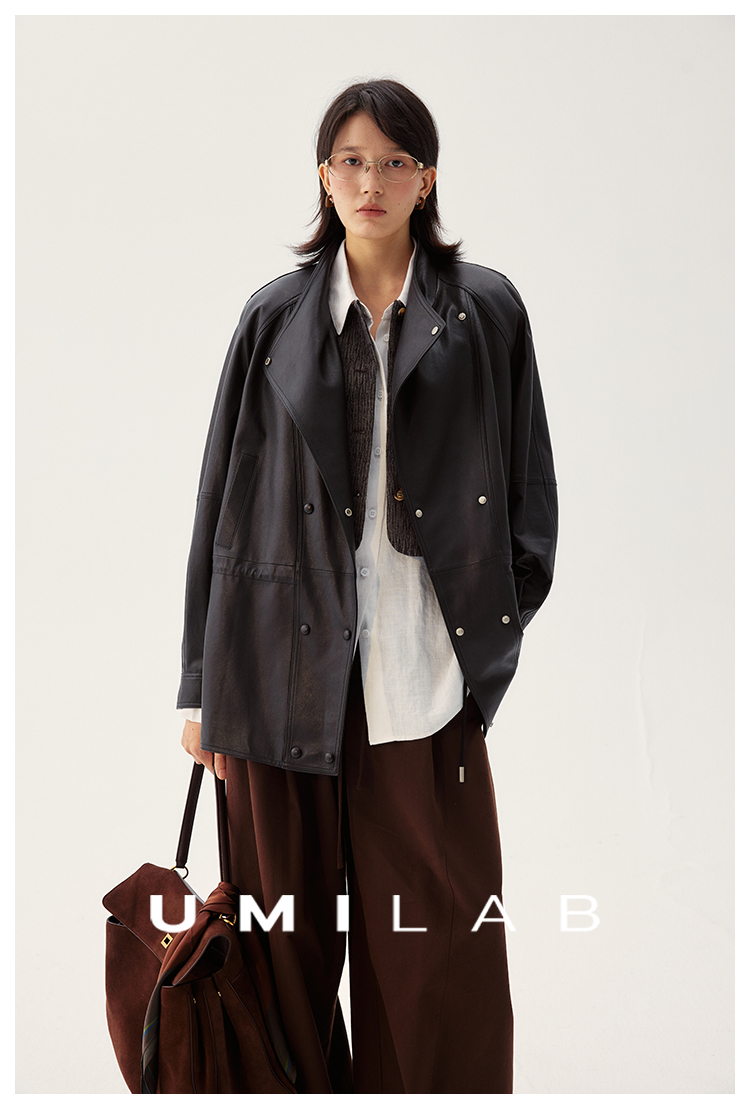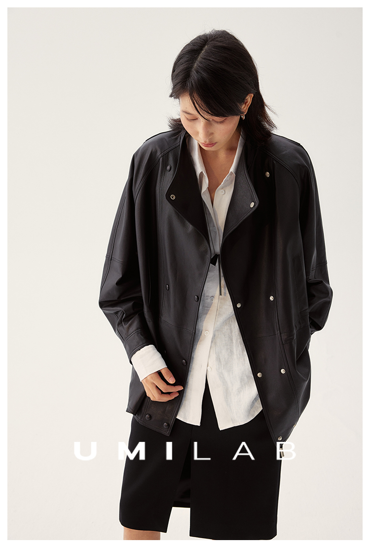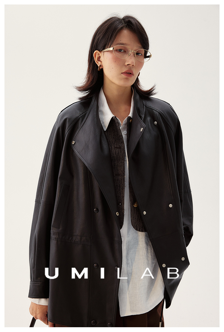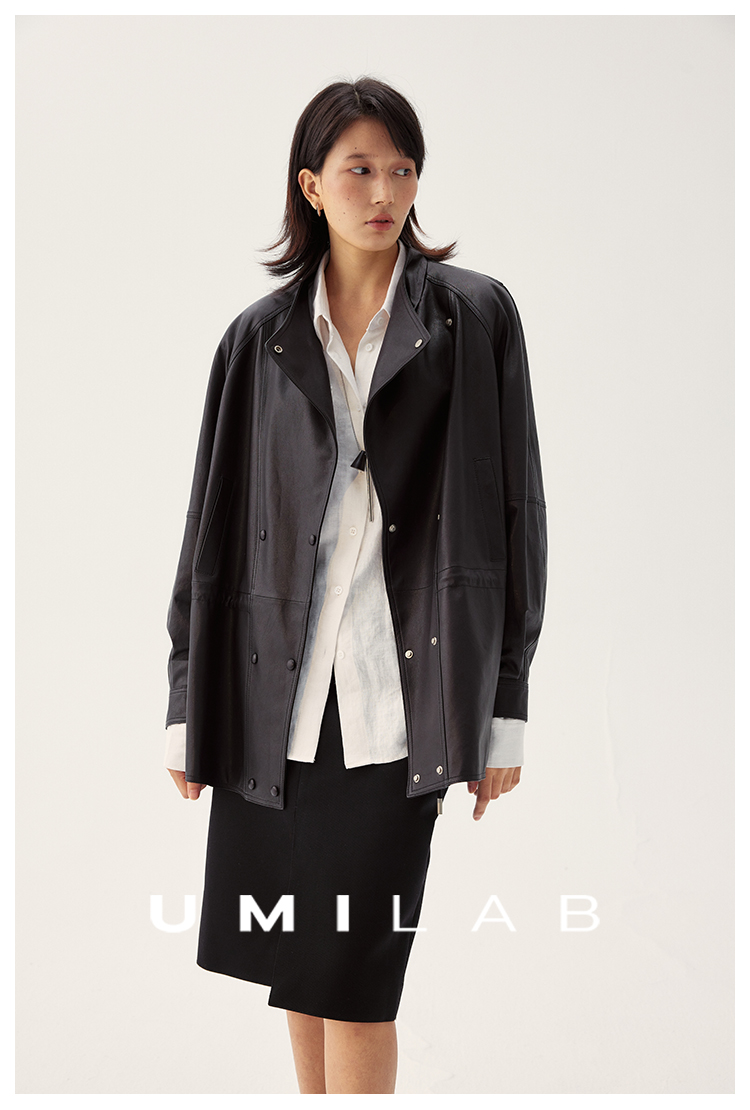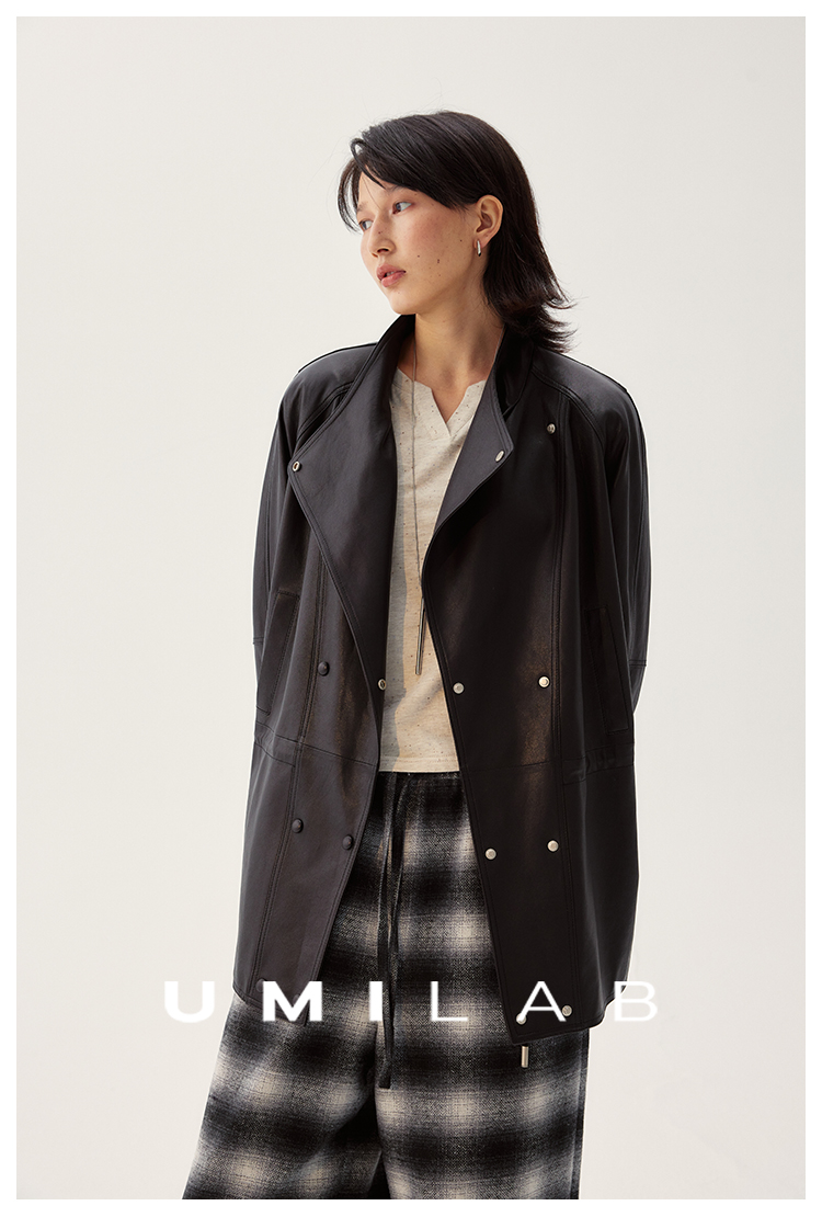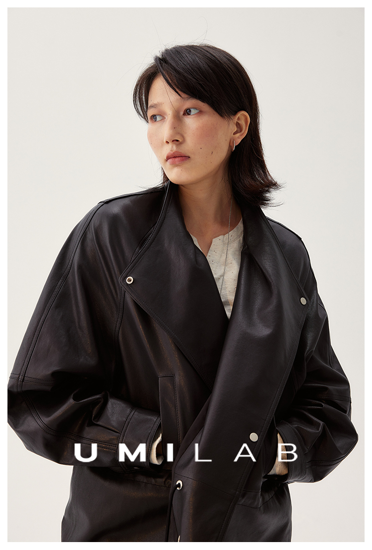 UMILAB|寂境*高奢质感 100%无涂层羊皮重工可收腰中长皮衣BC970W