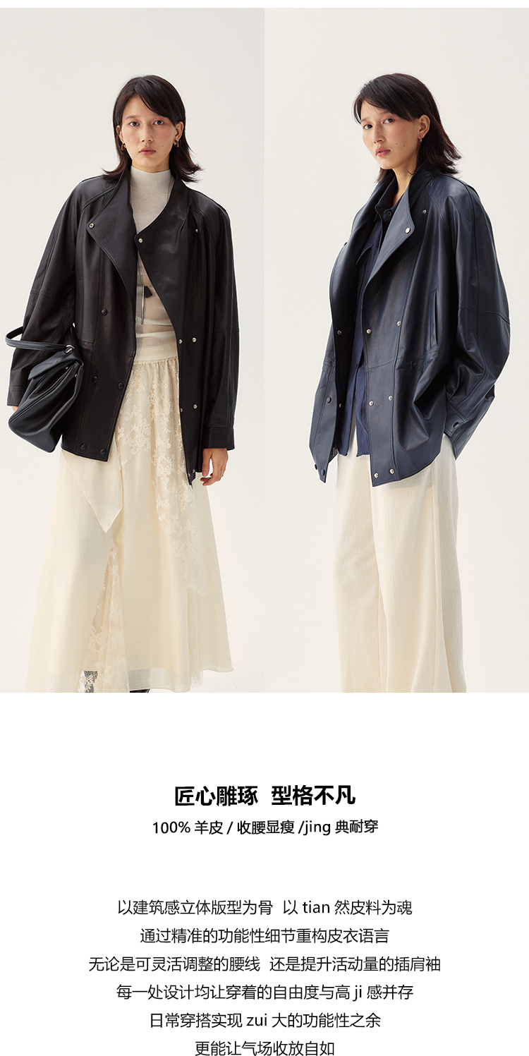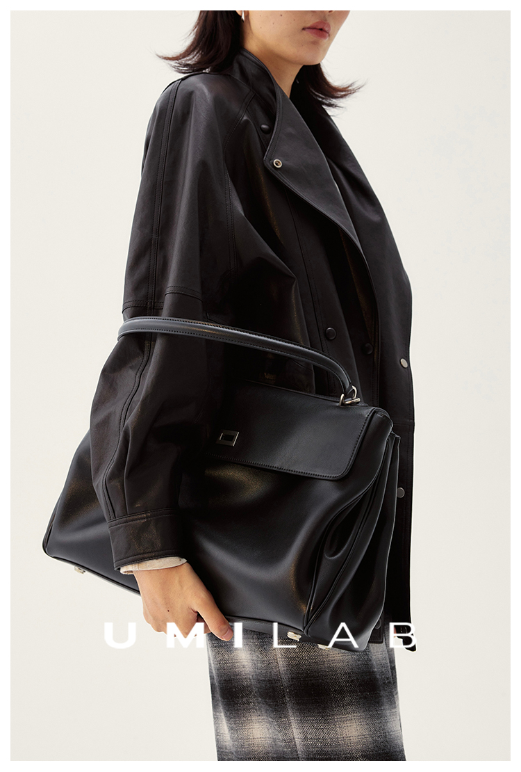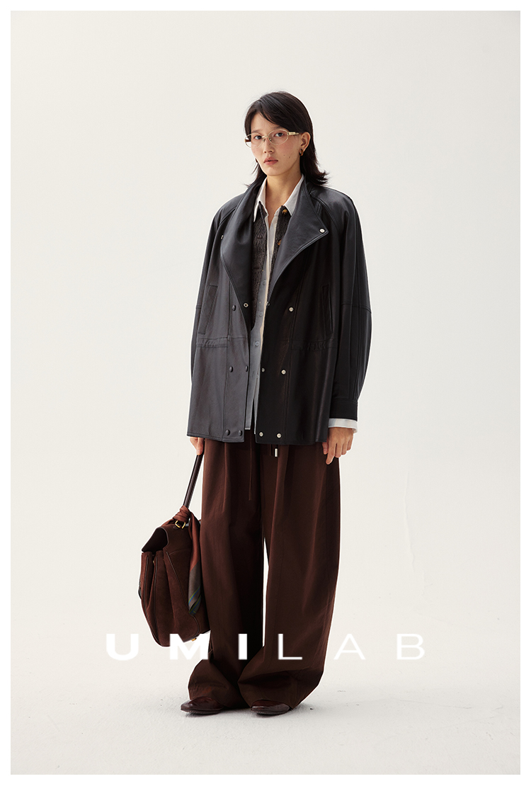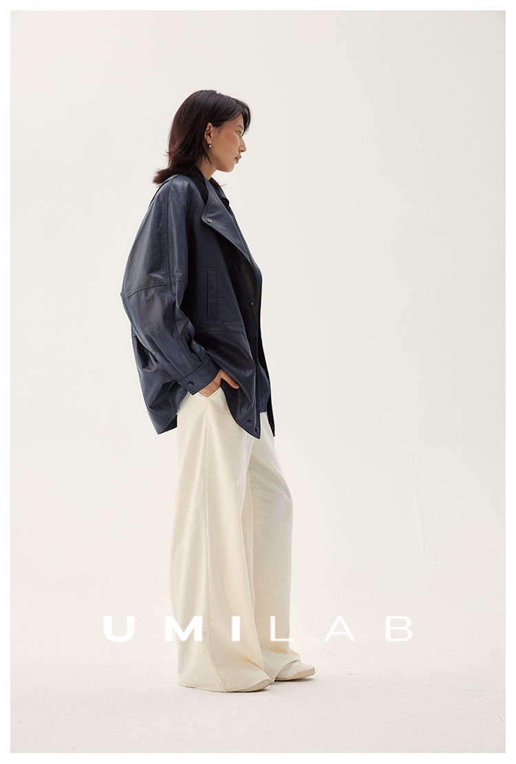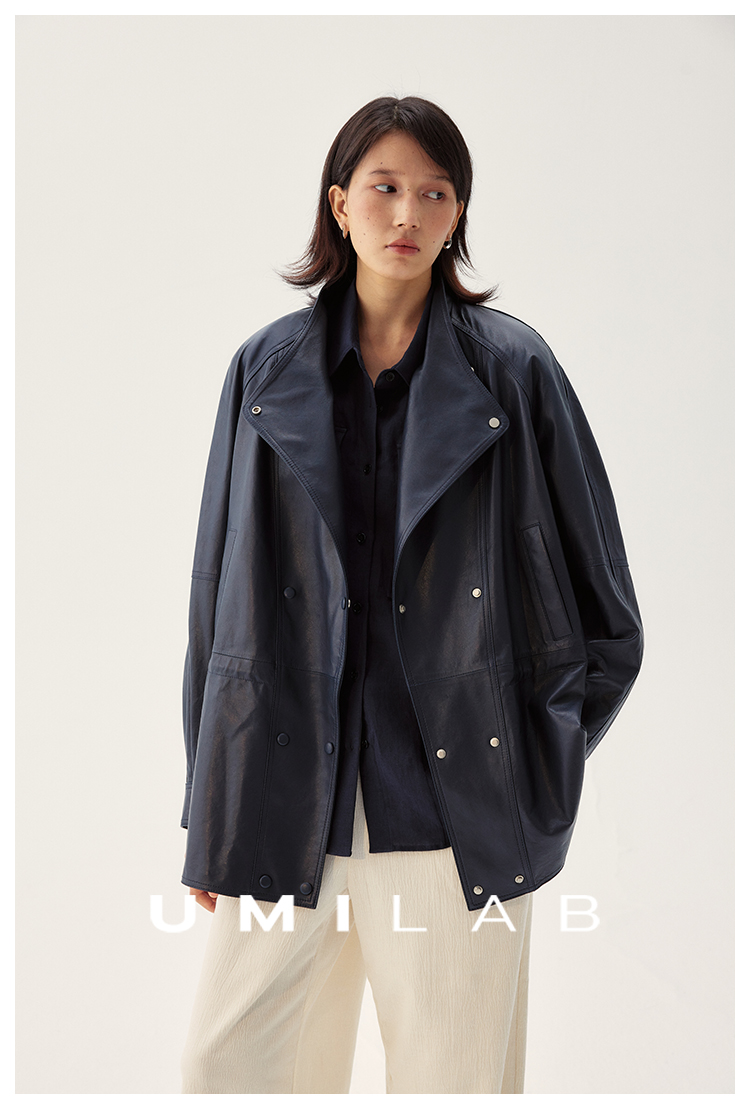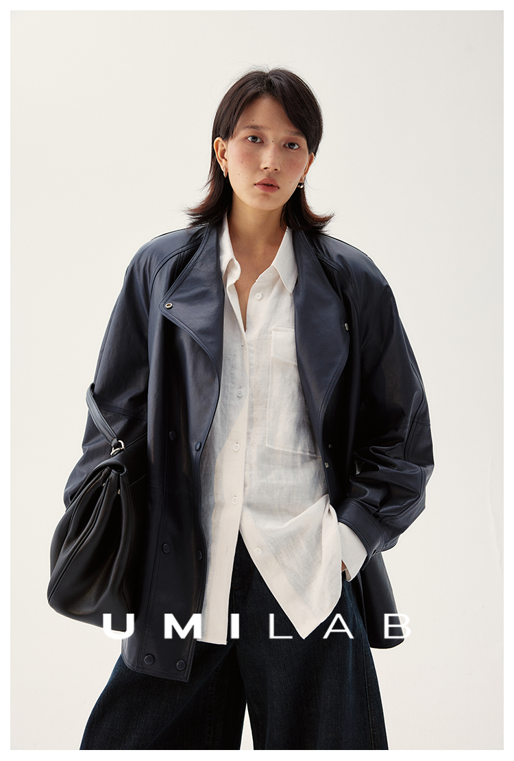 UMILAB|寂境*高奢质感 100%无涂层羊皮重工可收腰中长皮衣BC970W