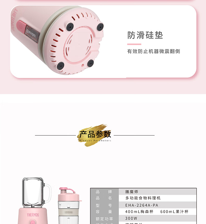 【分多包裹发货】EHA-2264A-PA多功能食物料理机+EHA-4101E-Z粉色饭煲套组【LXKGCJ10.0】