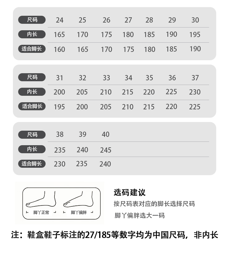 四、退换货及售后政策:支持7天无理由退换货,检查好以后再进行外穿,7天内不影响二次销售可进行调换!非质量问题客户可以自理运费退回,不影响二次销售。破损问题签收24小时之内带快递面单与鞋盒侧边信息表的图片和产品同框拍照报售后,超时不予处理望谅解。