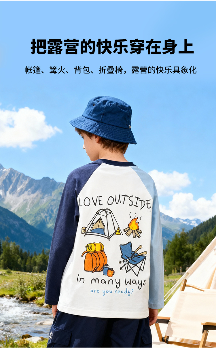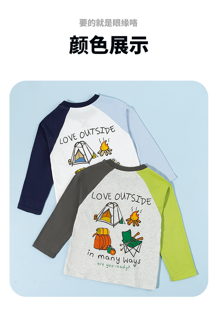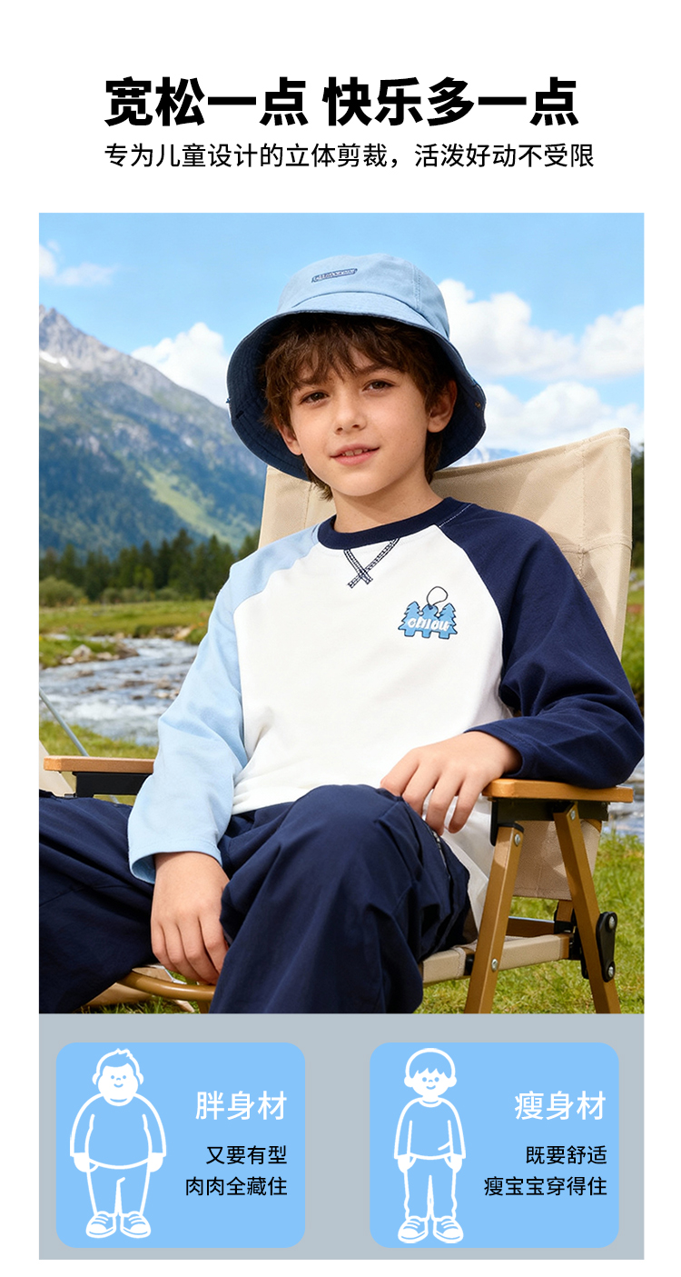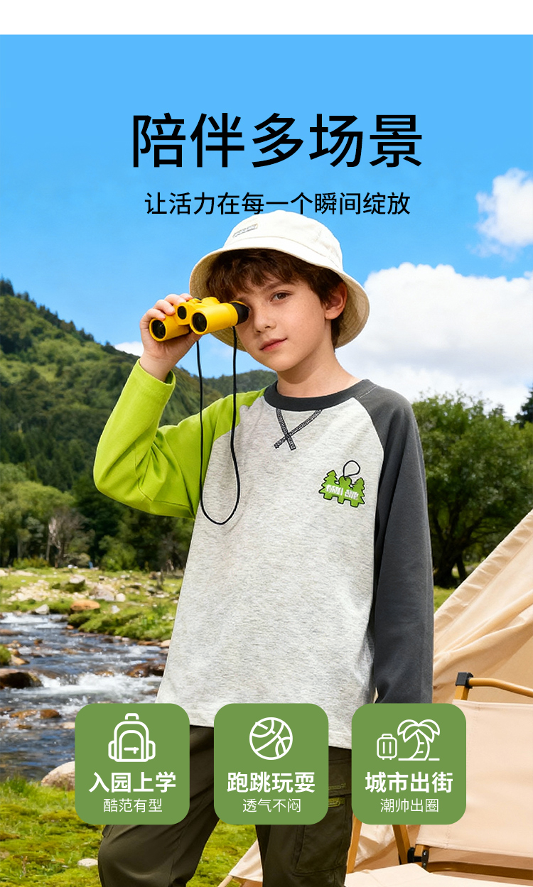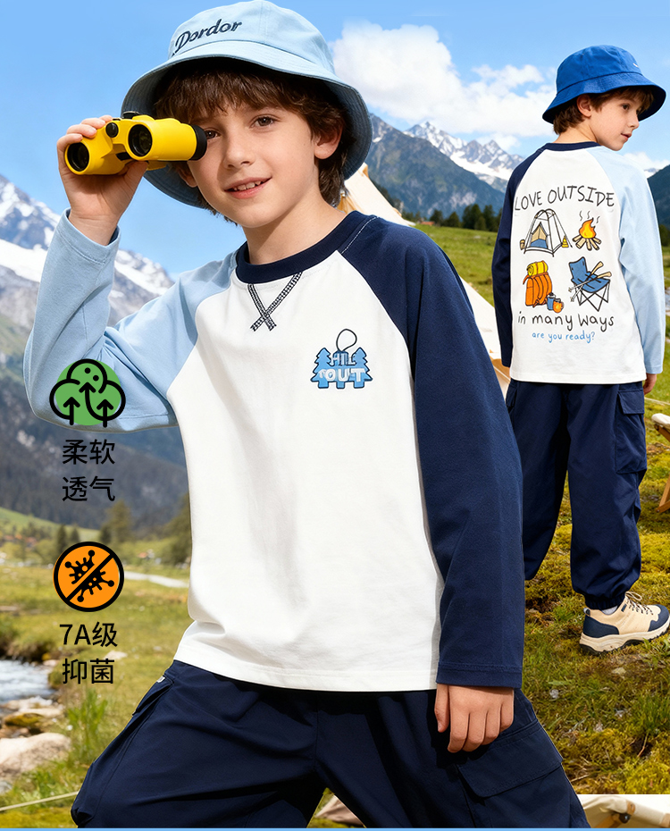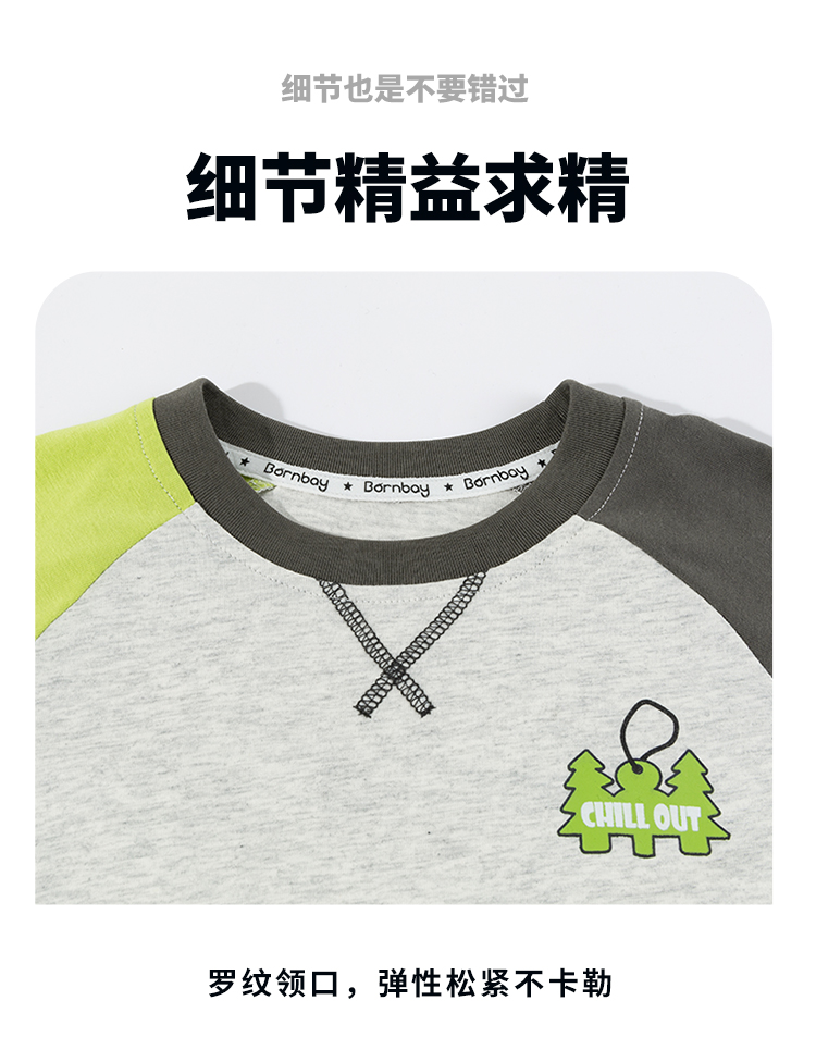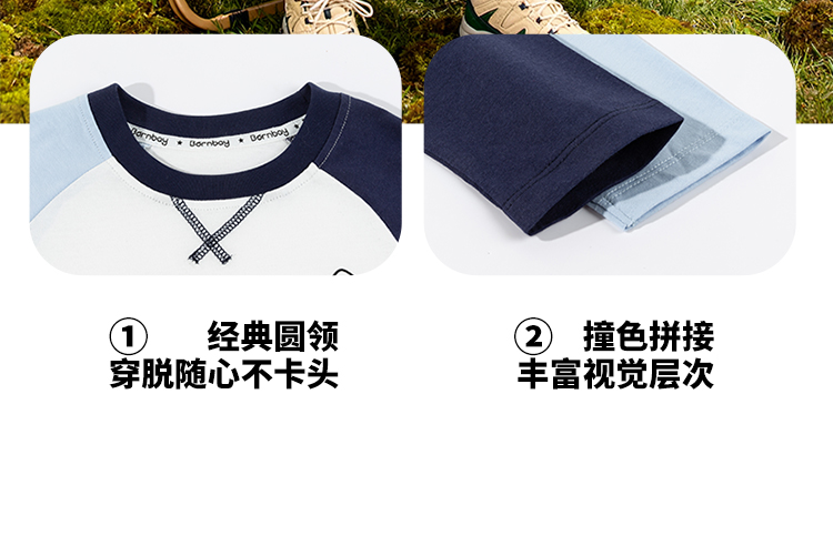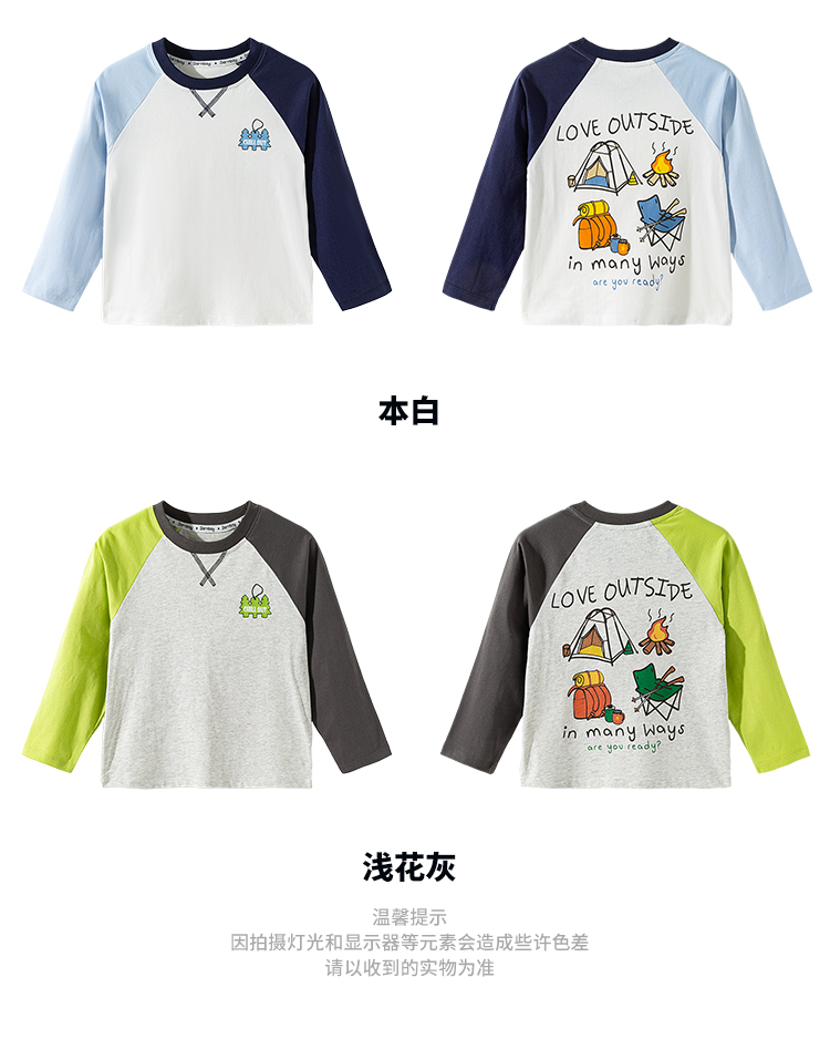 贝贝怡26春秋新款男童插肩袖上衣中大童运动休闲T恤ZB1FS004