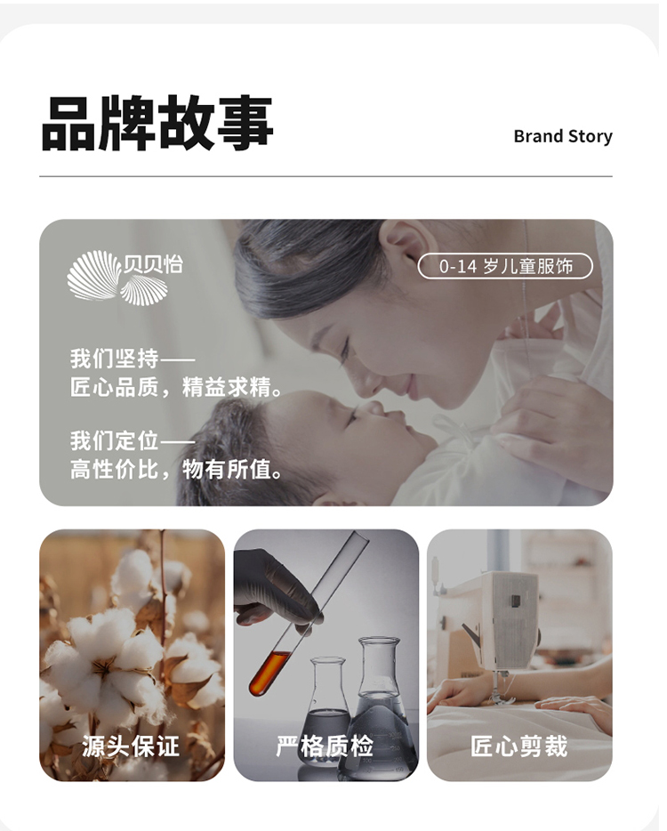 - 贝贝怡专注0-6岁婴幼儿服饰,坚持安全、柔软、舒适的产品理念,为千万中国家庭提供超高品质、安全可靠的婴幼儿服饰产品,妈妈放心,宝宝开心!
