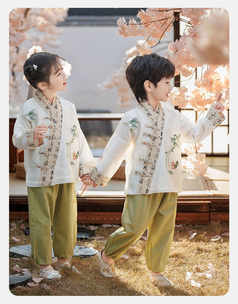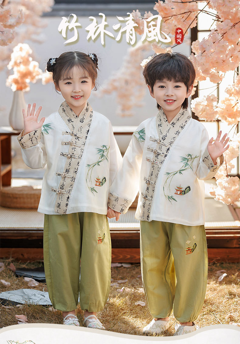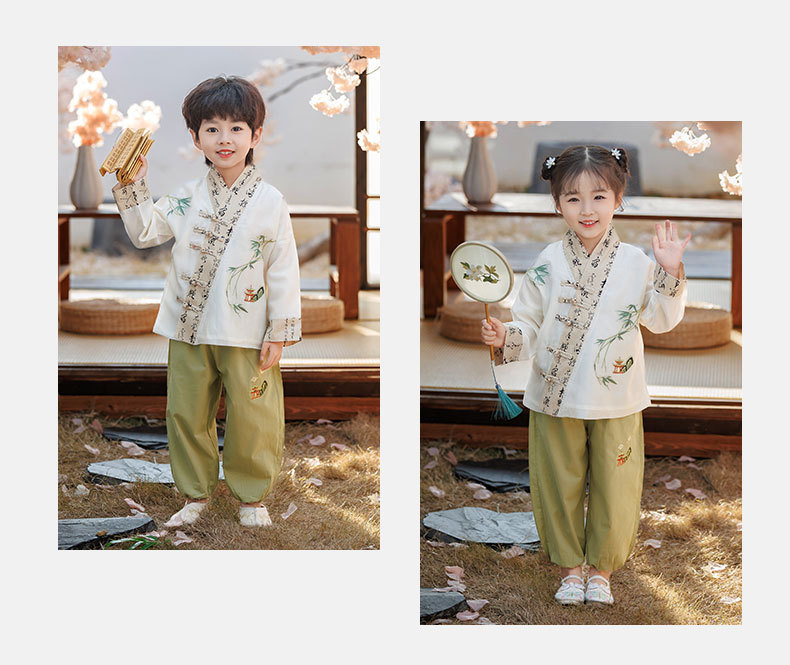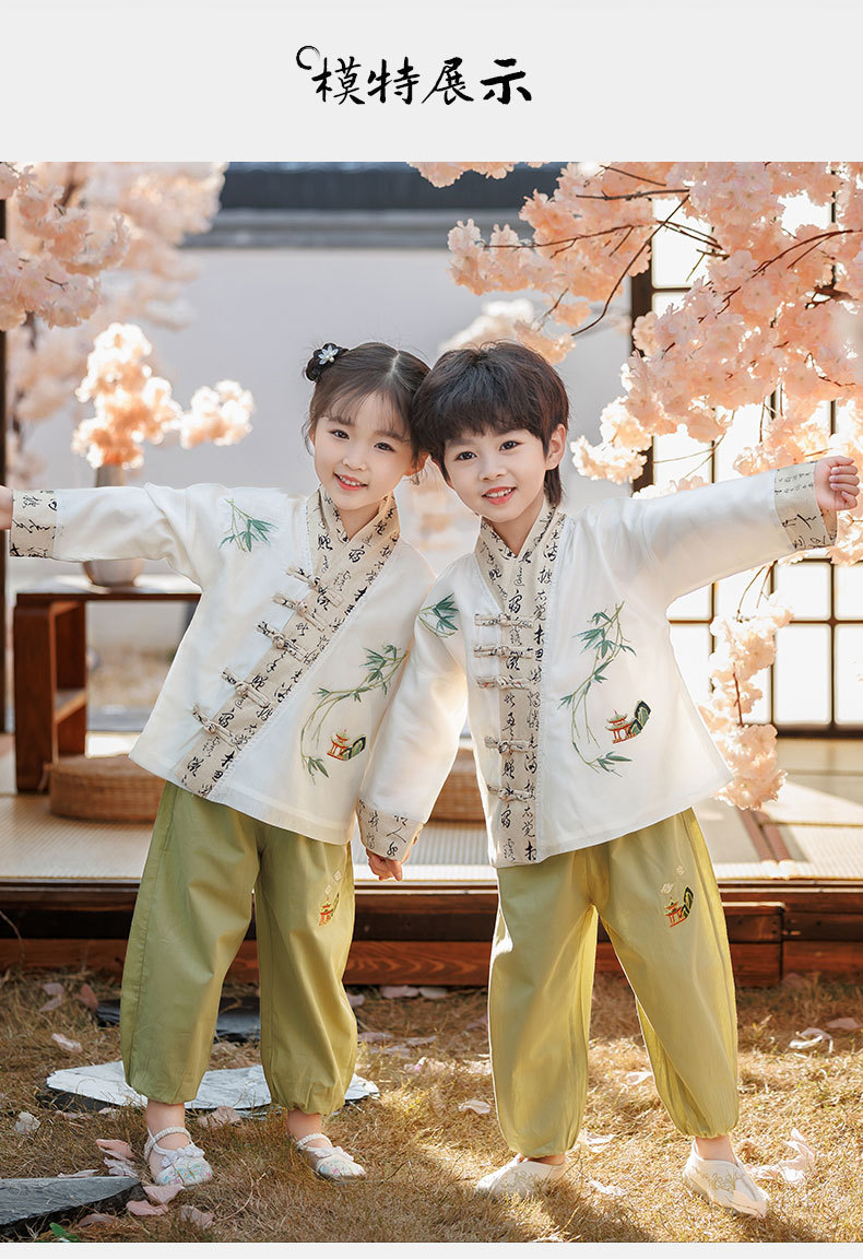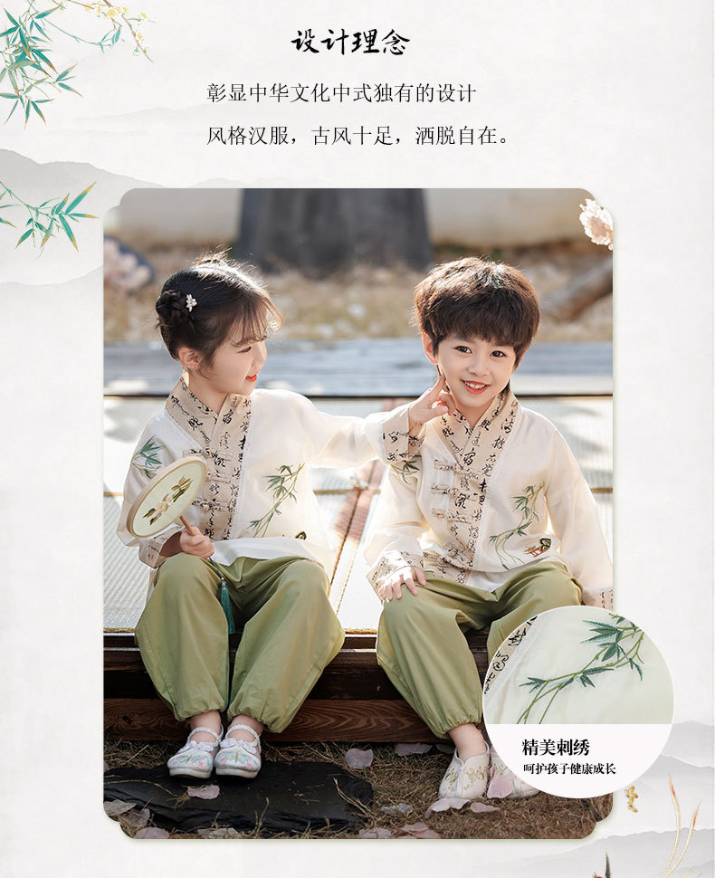 【竹林清风兄妹套装】汉服男童春秋款洋气儒雅国学服套装古风宝宝春季唐装演出服两件套