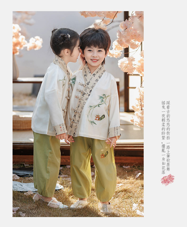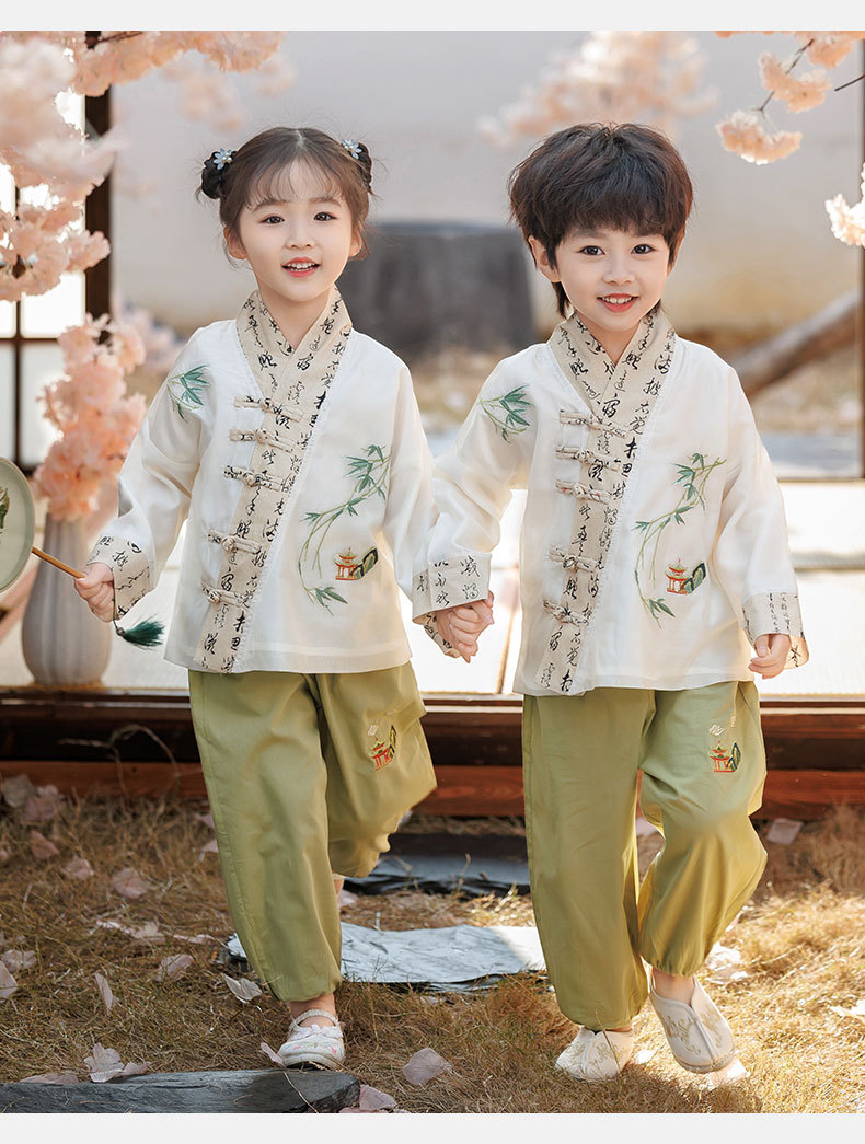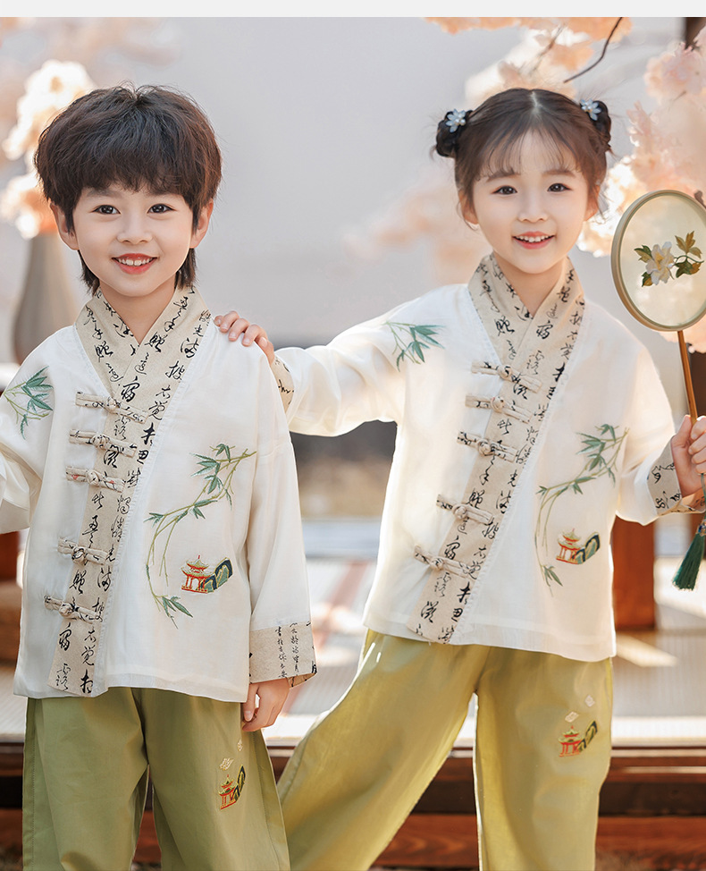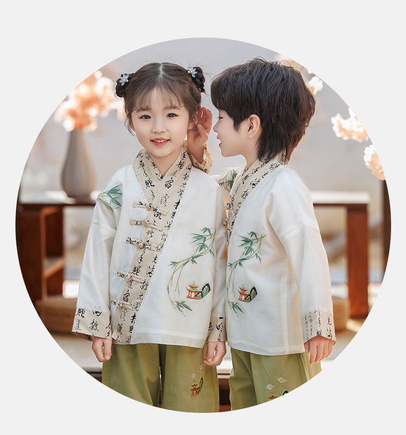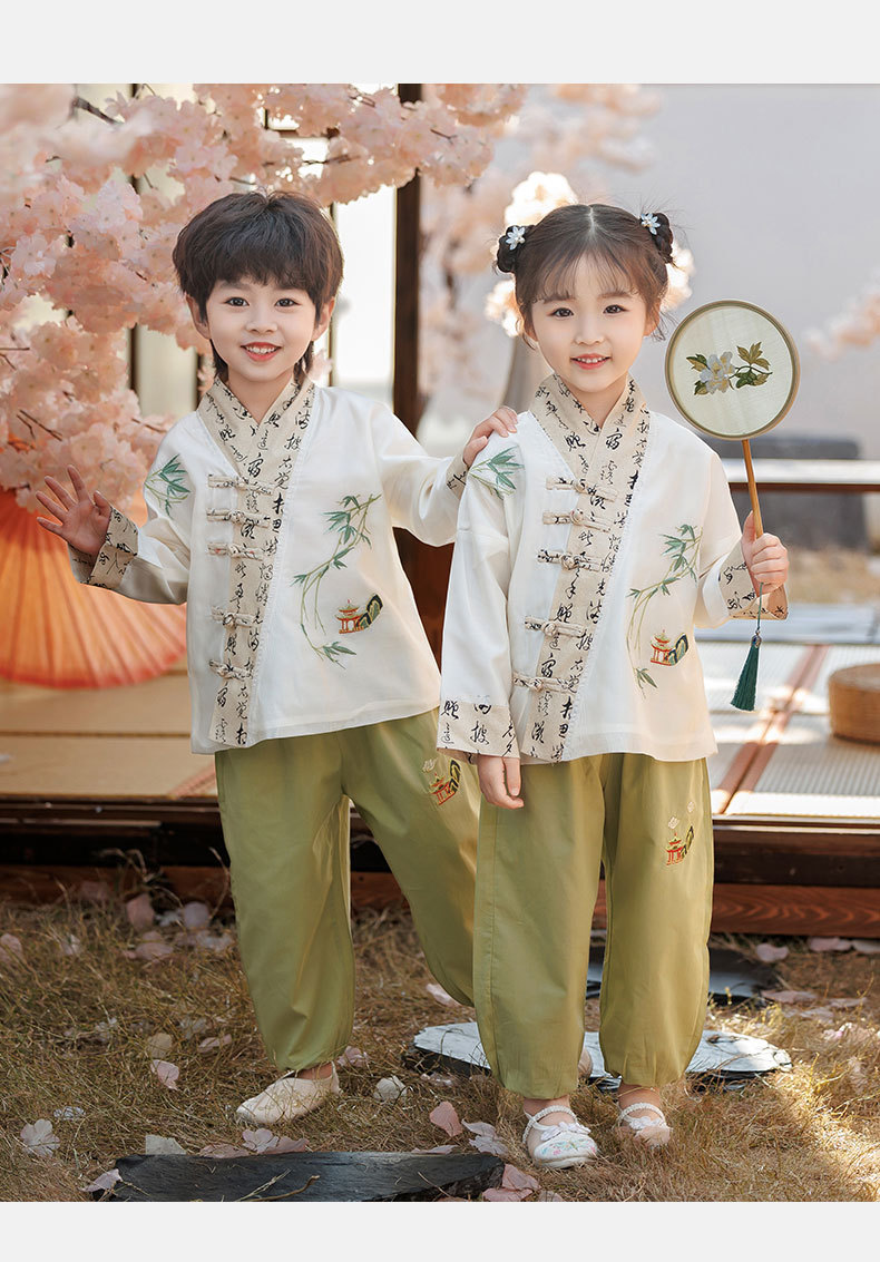 【竹林清风兄妹套装】汉服男童春秋款洋气儒雅国学服套装古风宝宝春季唐装演出服两件套