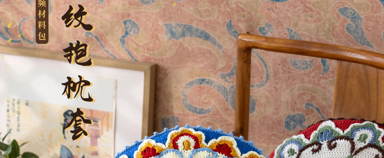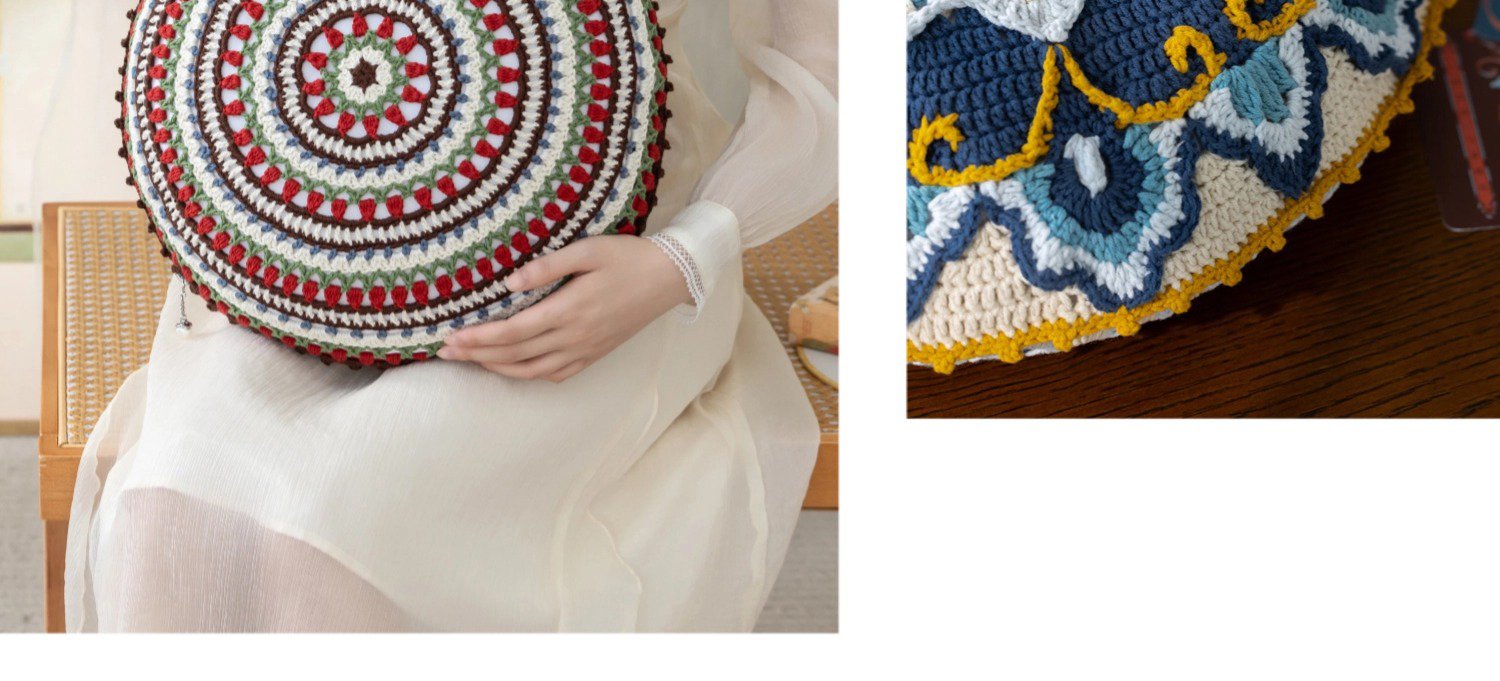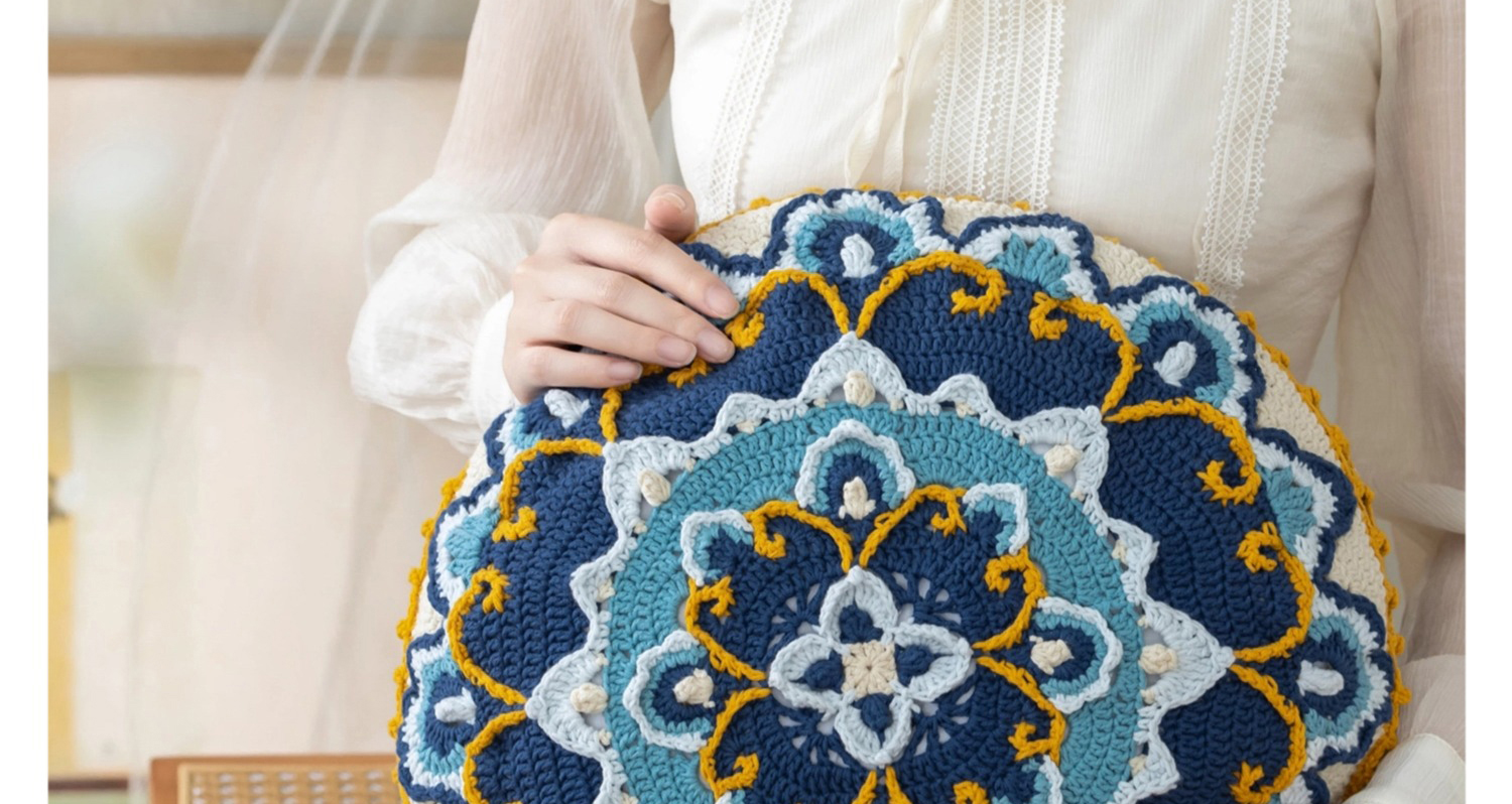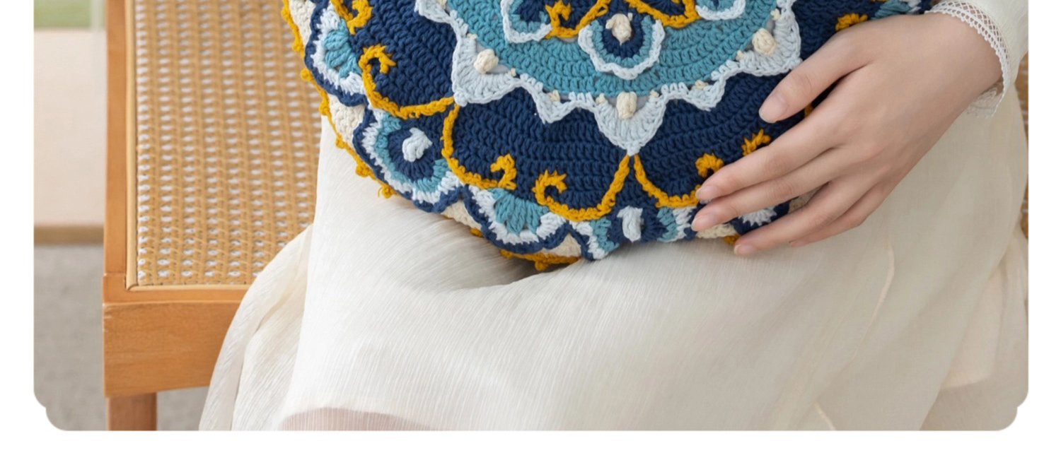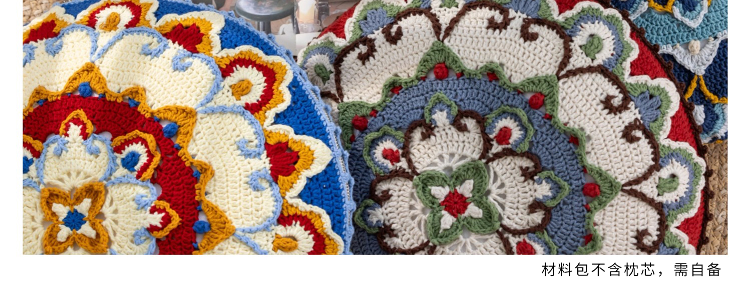苏苏姐家莲瓣卷云纹抱枕套手工DIY编织钩针4股棉毛线团自制材料包