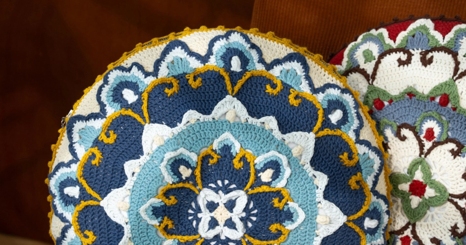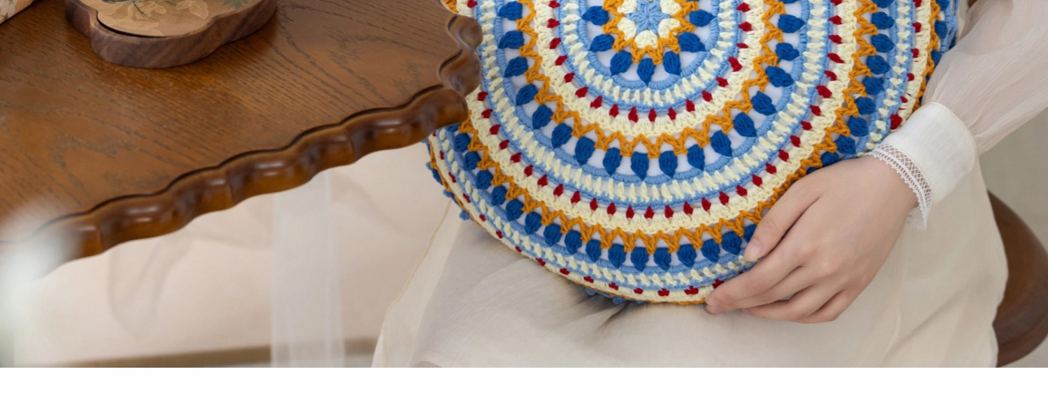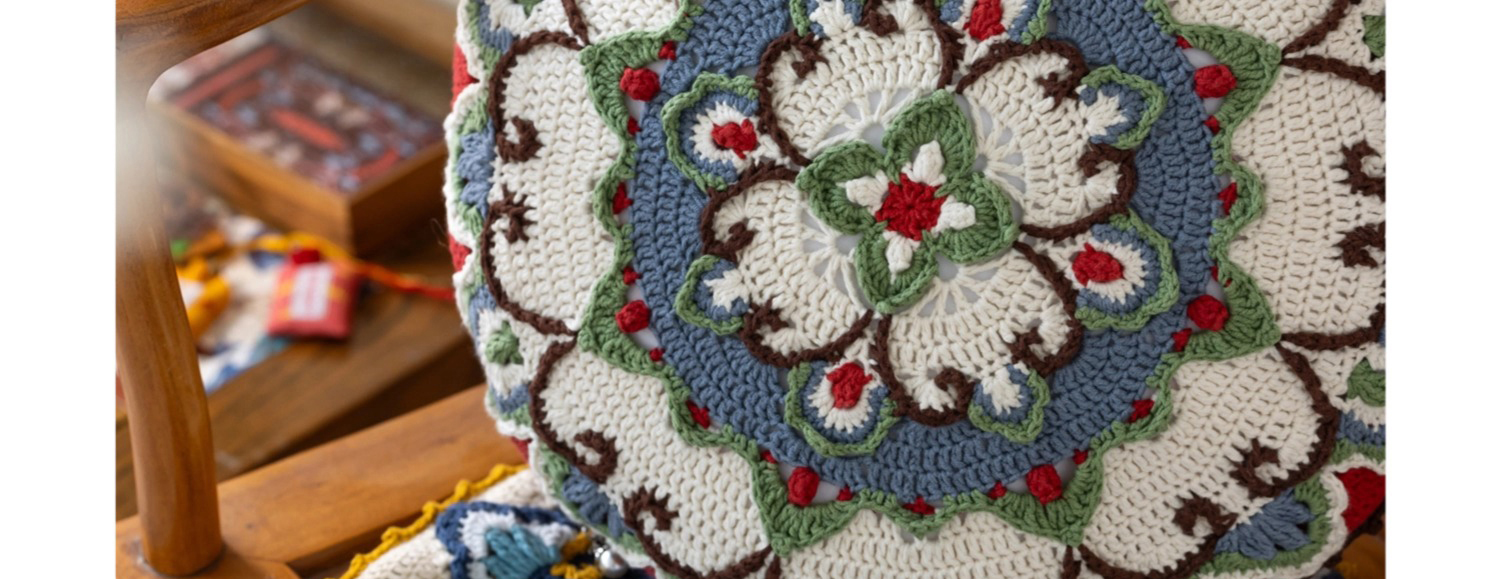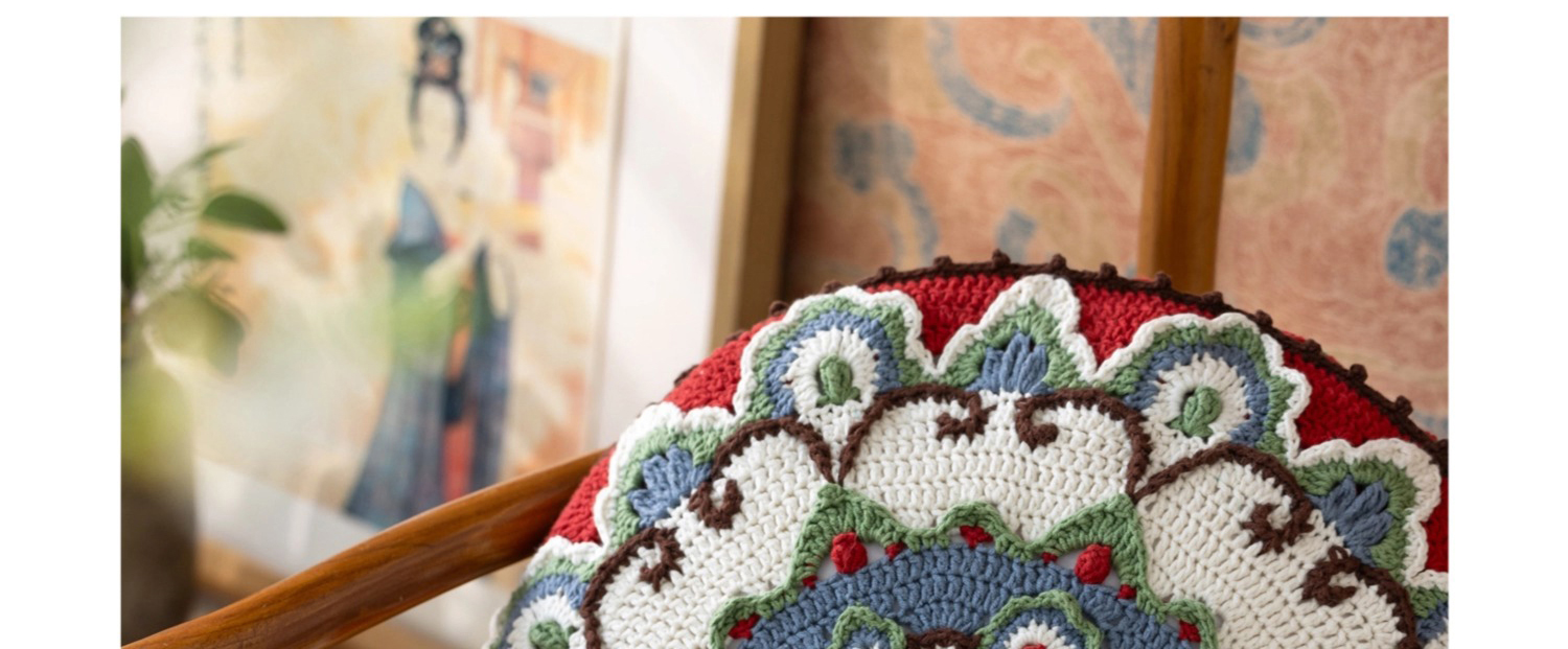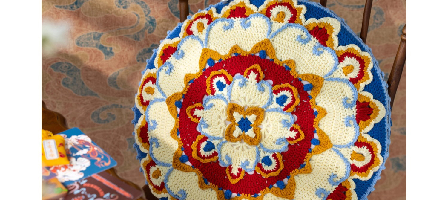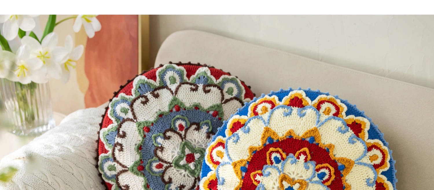 苏苏姐家莲瓣卷云纹抱枕套手工DIY编织钩针4股棉毛线团自制材料包