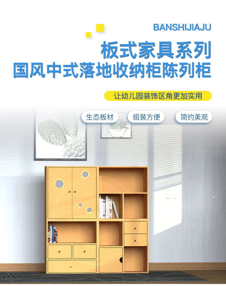 国风中式落地收纳柜陈列组合柜幼儿园小空间落地收纳柜陈列组合柜