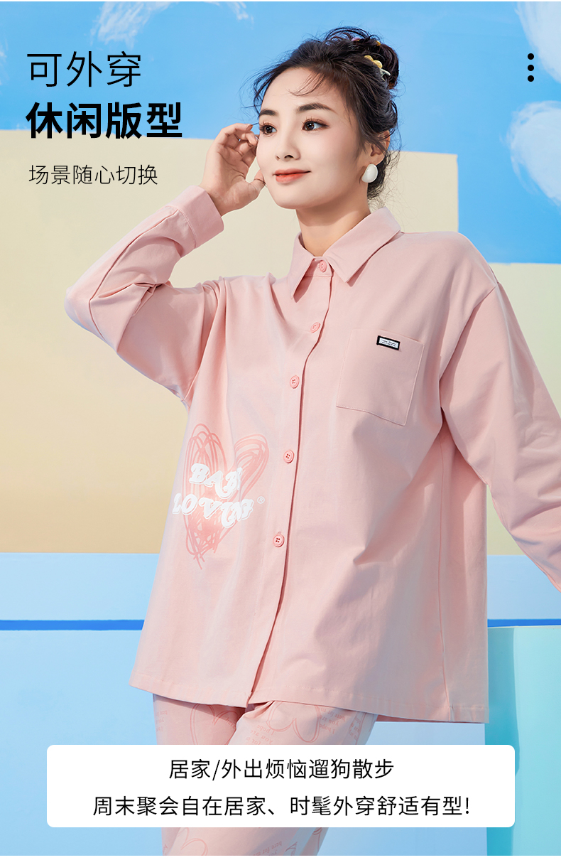 雅黛丽睡衣女款春秋高级感家居服套装2024新款棉质柔软可爱可外穿