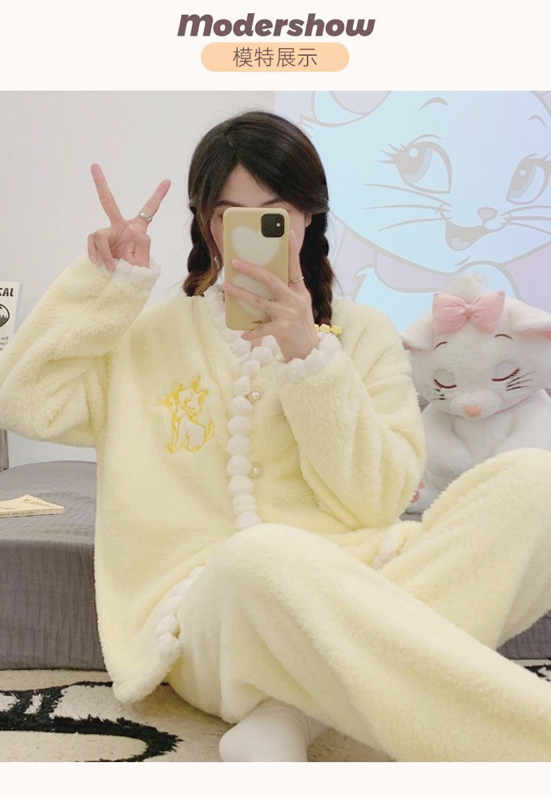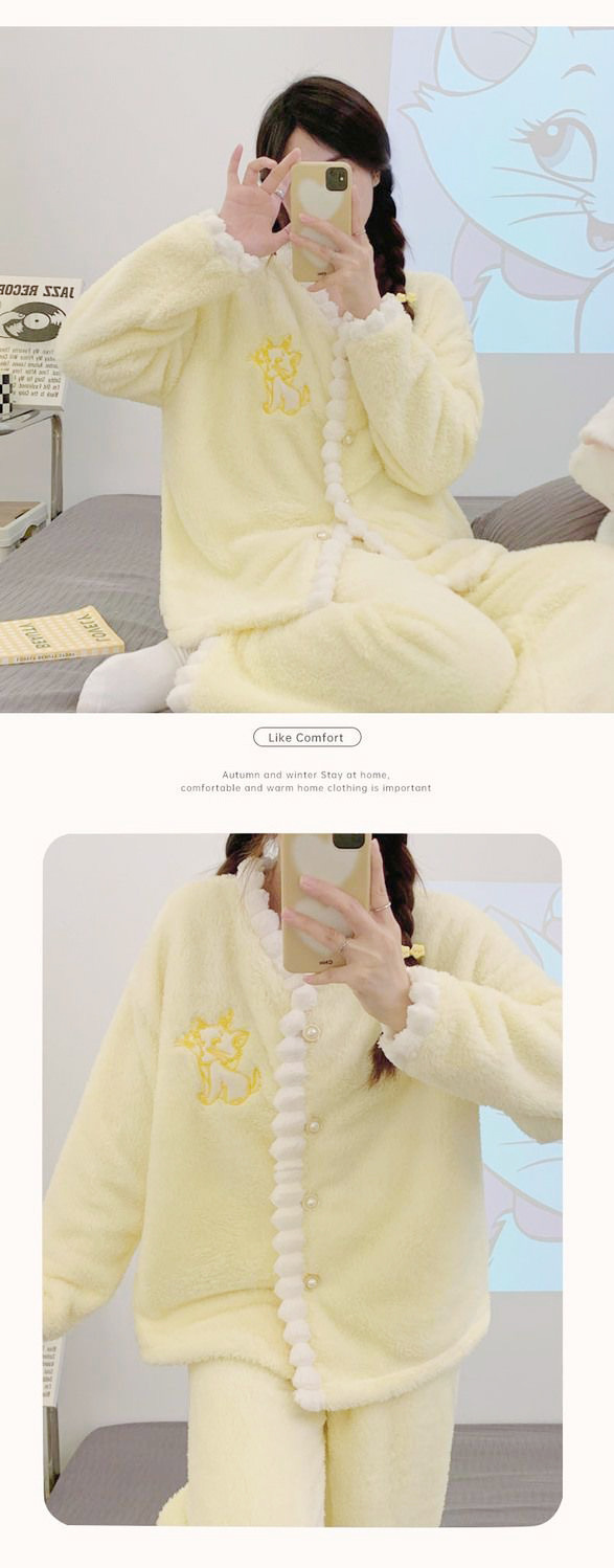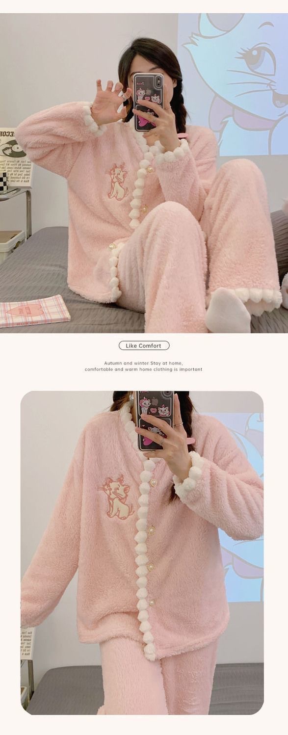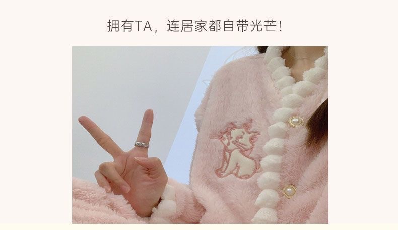 【双面加绒❗️刺绣法兰绒睡衣】冬季加绒加厚睡衣,胸前刺绣精致可爱,法兰绒家居服套装甜美可爱风女士睡衣