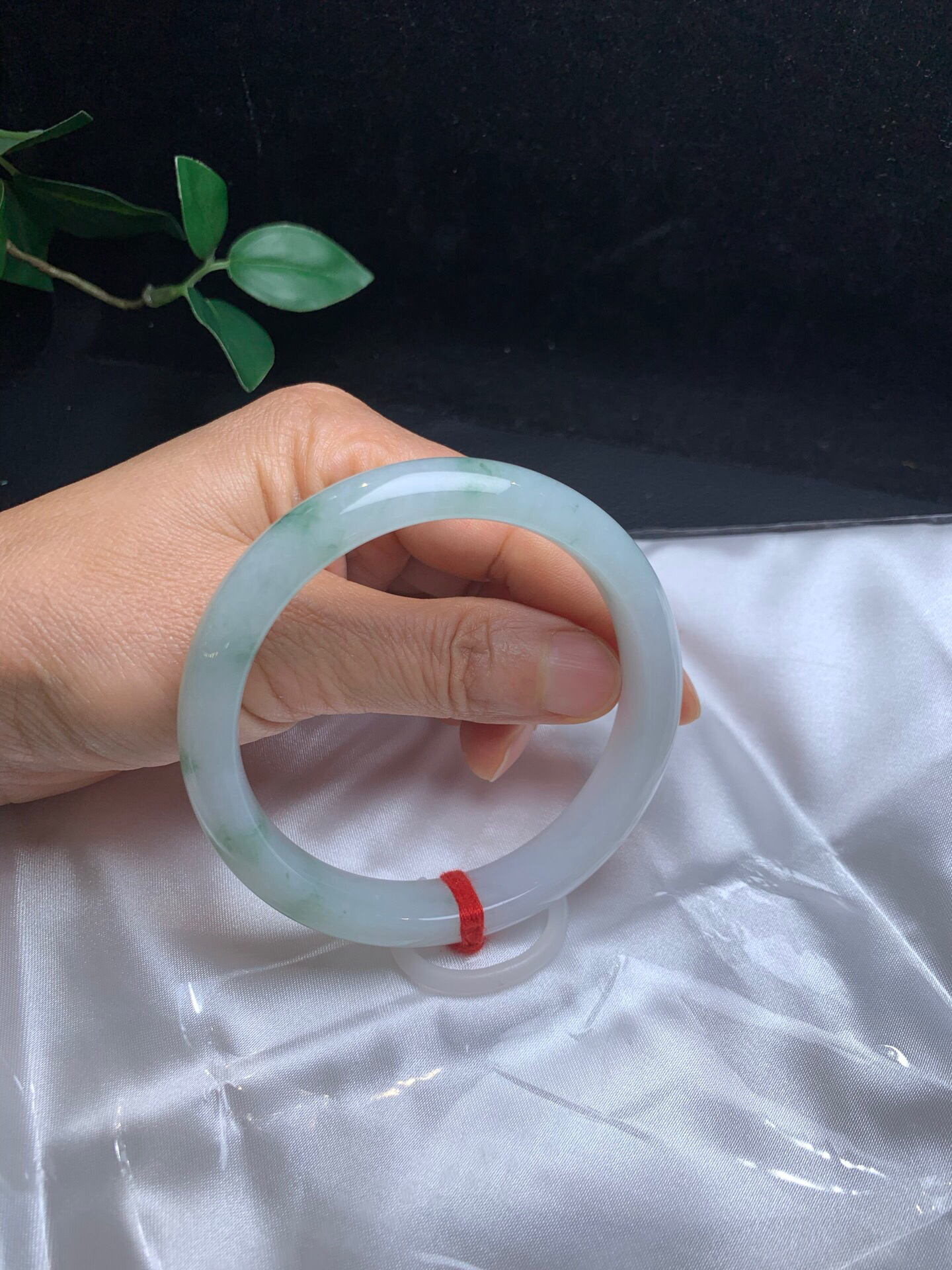 612874,60.5飘花手镯,12.6-7.8mm,底细腻,大半圈飘蓝花,干净完美,超值价💰12600 #优石客珠宝#香玉荟萃