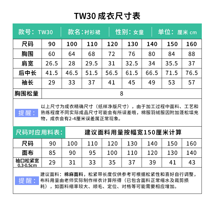 裁缝学苑 TW30宝宝中长款衬衣裙衫1:1实物服装纸样剪图纸牛皮纸样