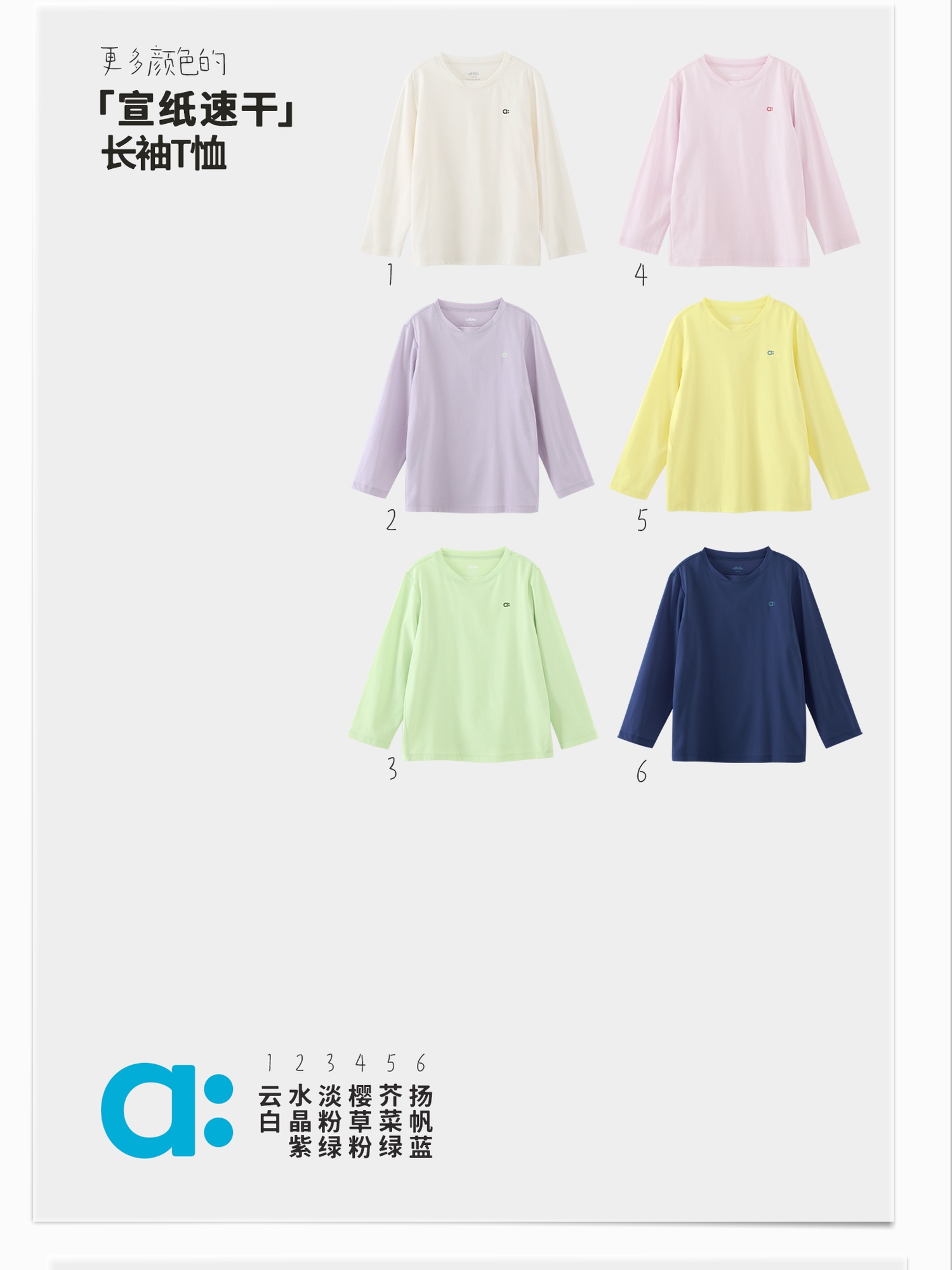 【春Vol.2】幼岚「宣纸速干」柔软亲肤纯色长袖T恤24春季新款儿童男女童T恤ZY