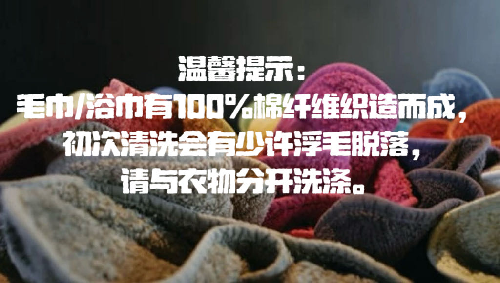 毛巾初次洗涤只需清水或者温水漂洗去除浮毛,无捻类/高克重类产品请用清水先进行浸泡后再进行漂洗,避免添加柔软剂或含柔软剂的洗衣液。