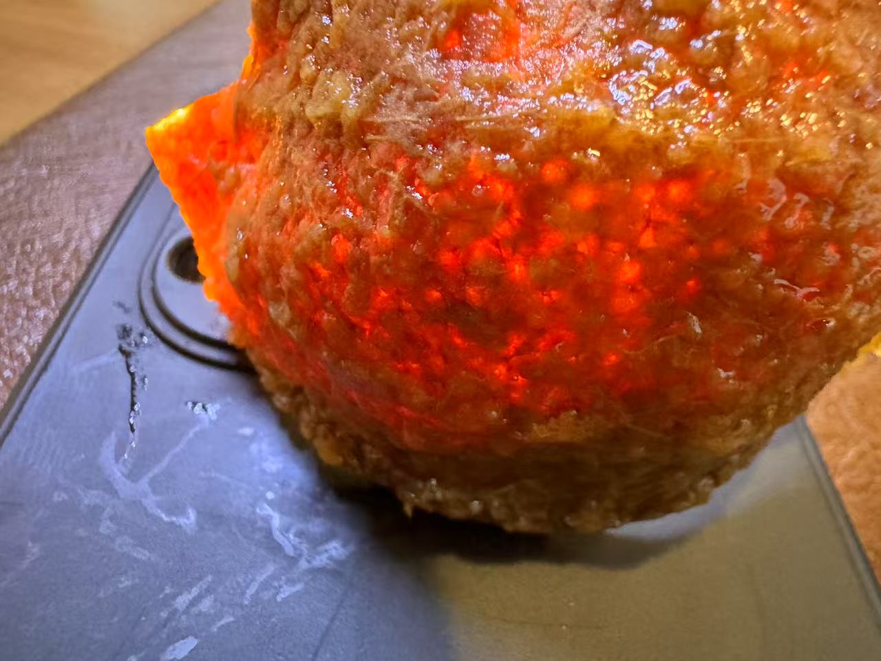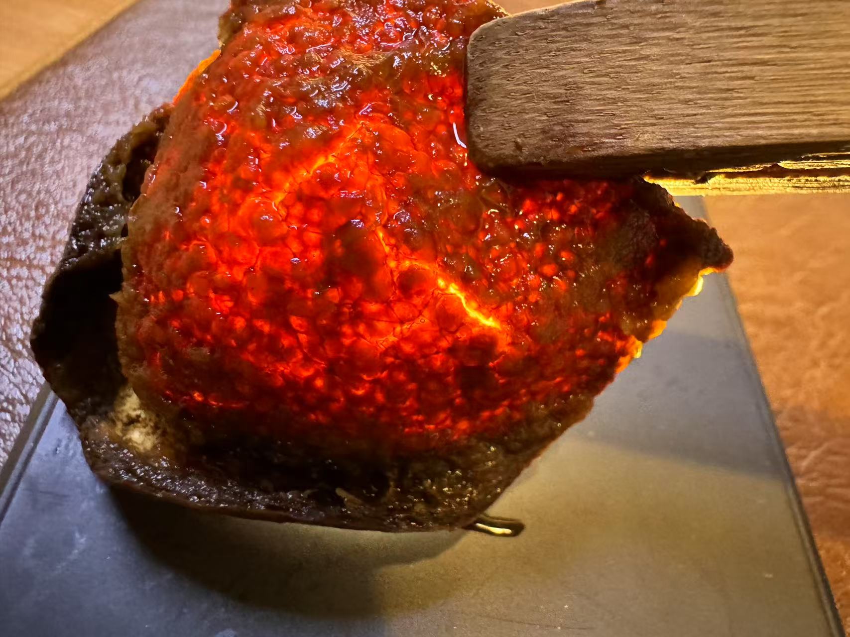 这是一款大红皮,糖份比较足,陈化后猪鬃感更明显,褶皱点更紧实,所以看起来比较厚。