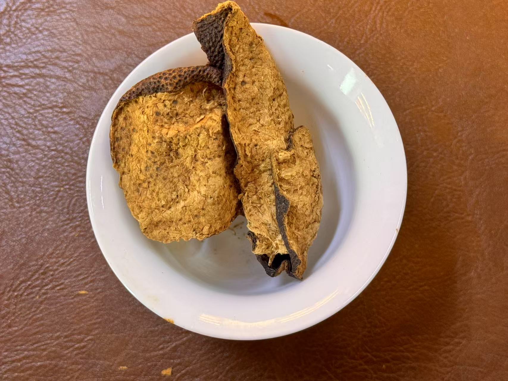 干仓出来的成色就是漂亮,内瓤很干净,我收藏的90、80年代的老皮【标本】也是这样的干净。