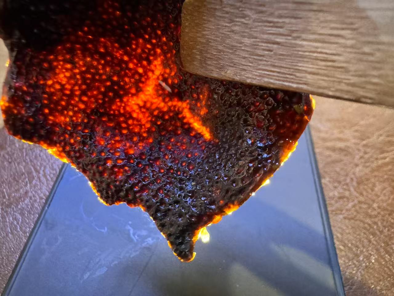 光照下的表皮油室~~好产区的大红皮才可以这么漂亮。