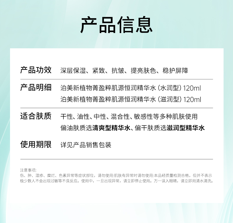 【官方授权】泊美植物菁盈粹肌源恒润精华水2.0 120ml
