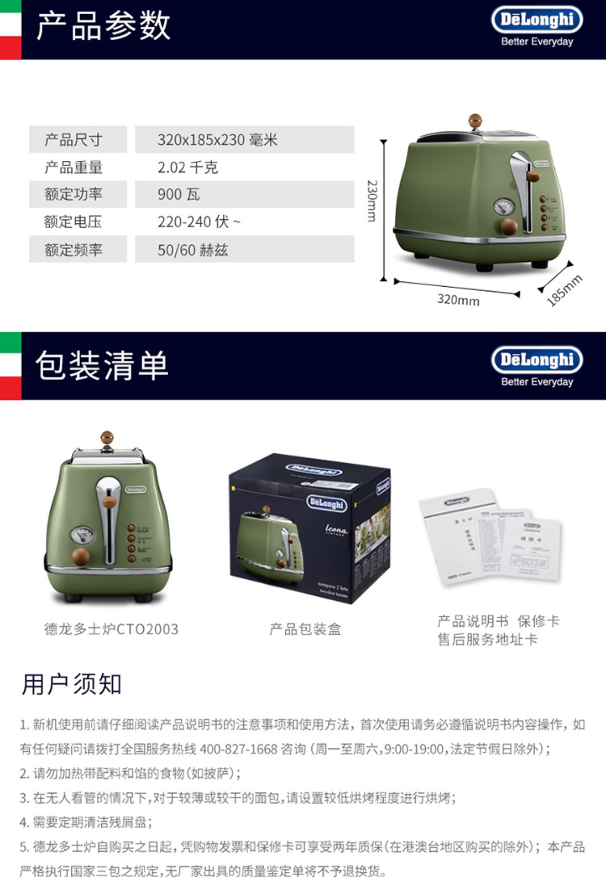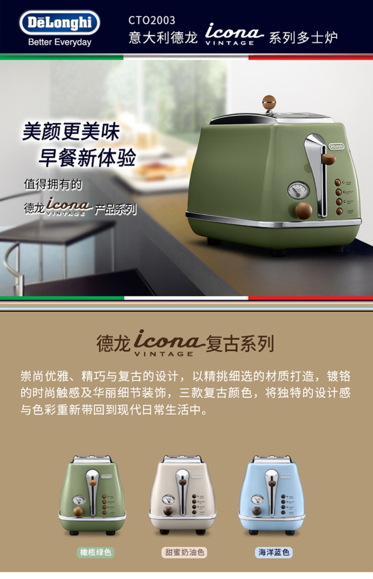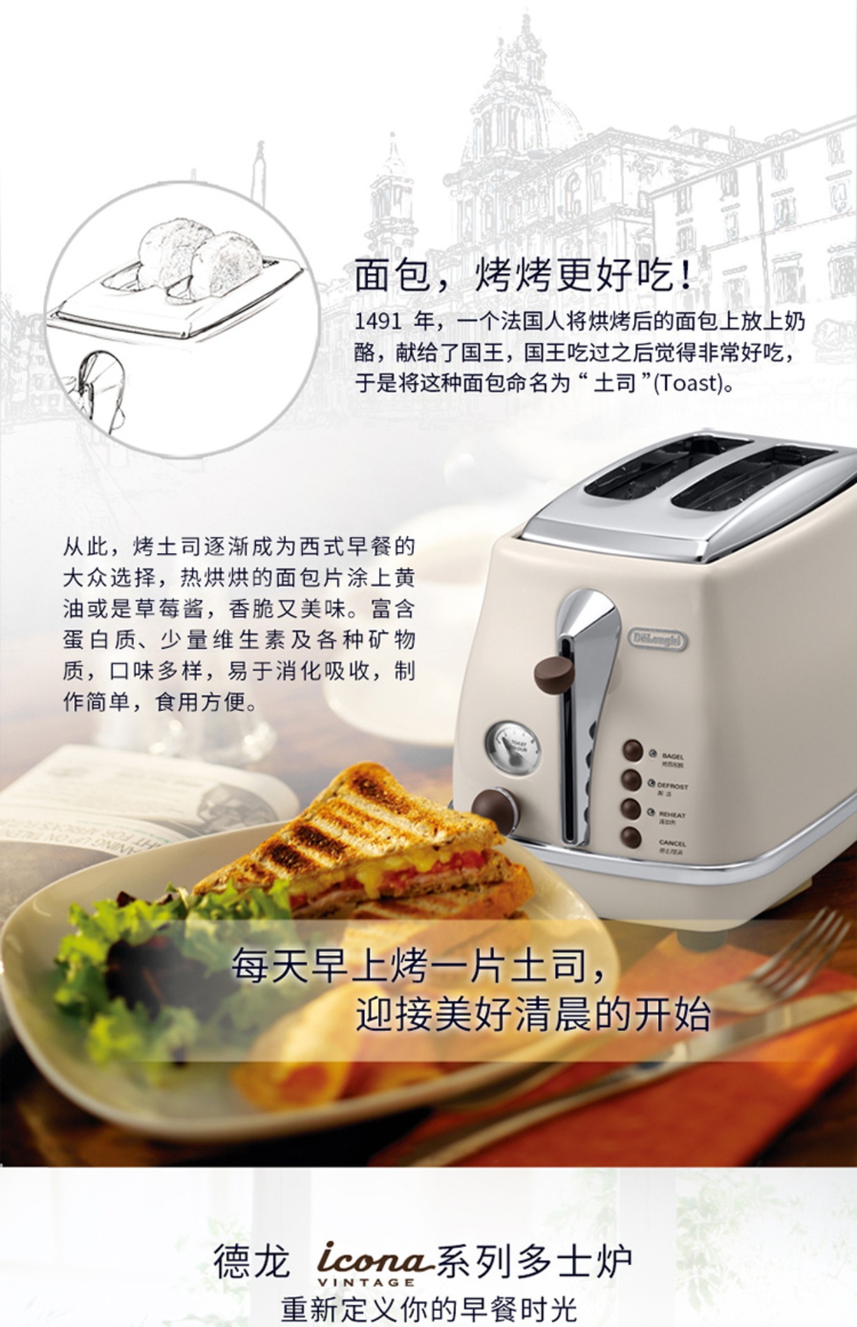 【6F】/德龙CTO2003烤面包机多士炉全自动早餐家用复古烤吐司机