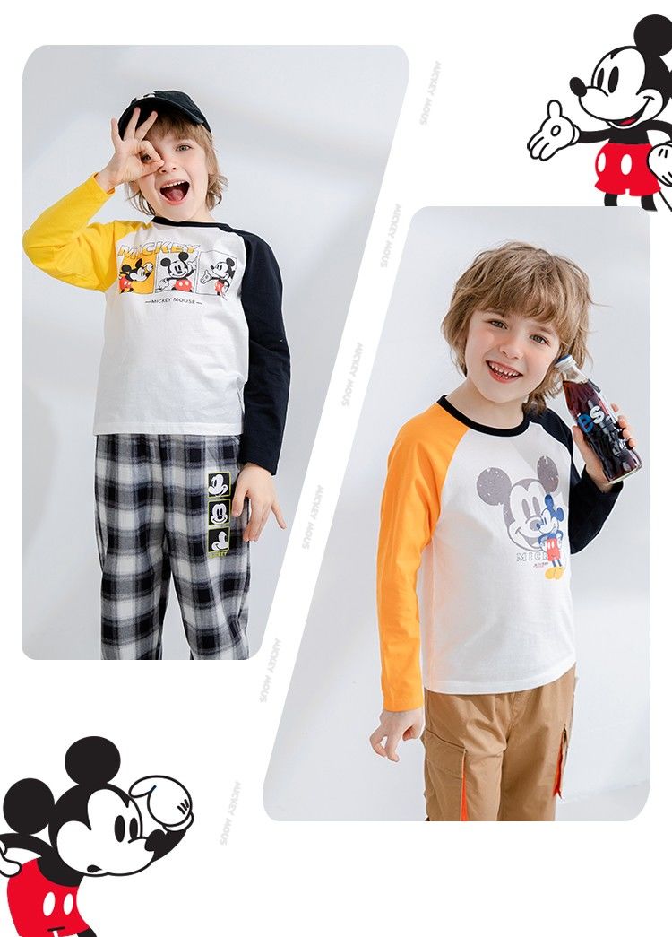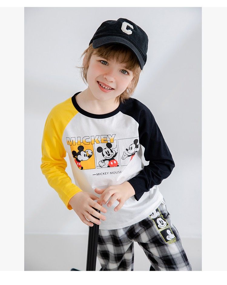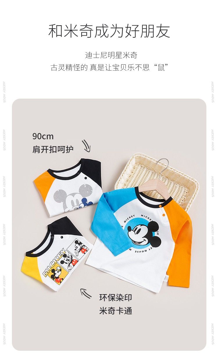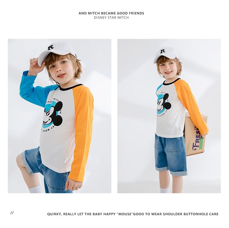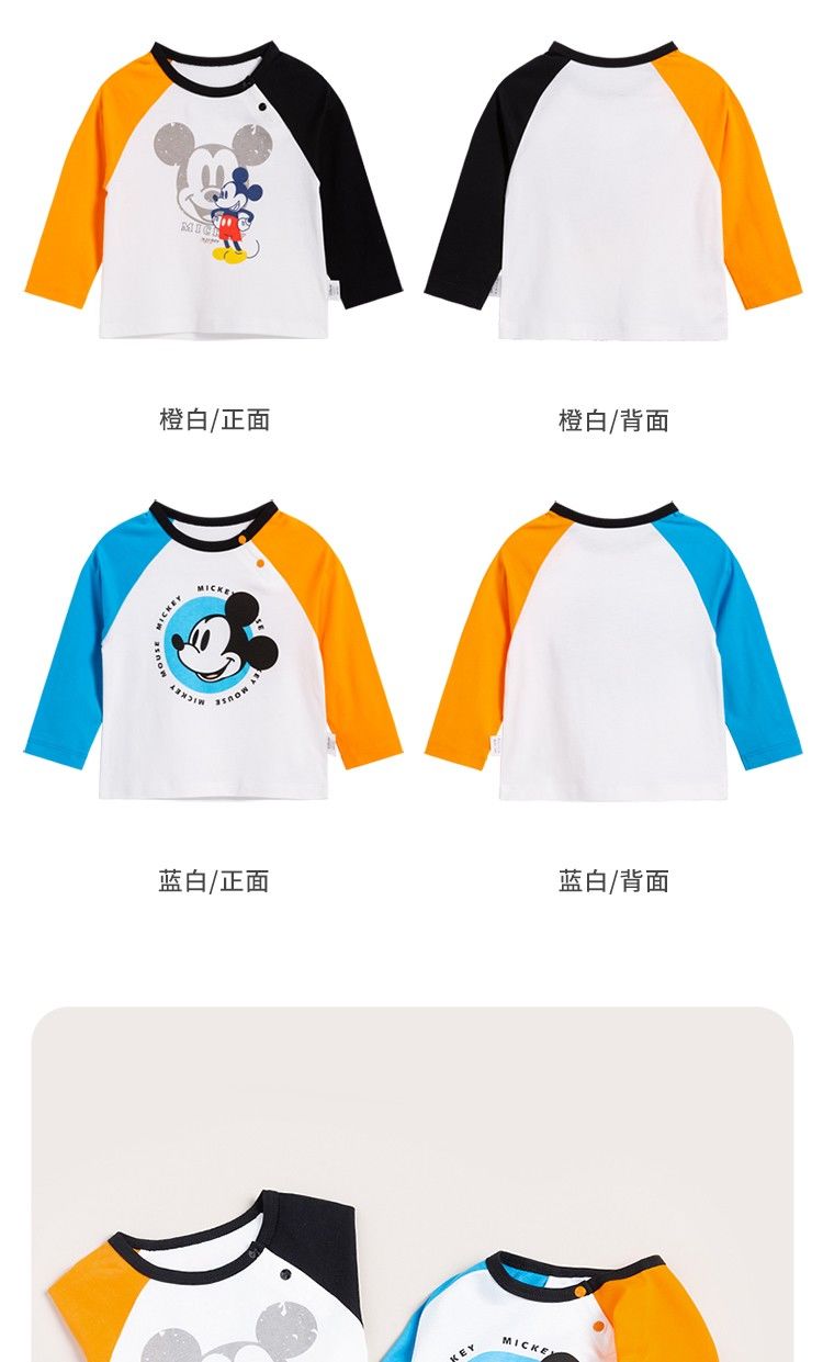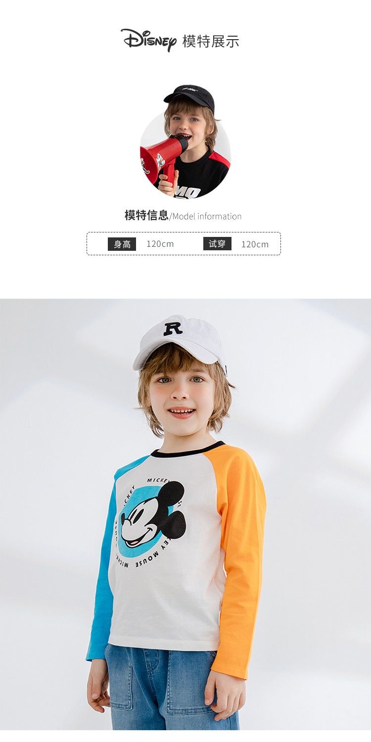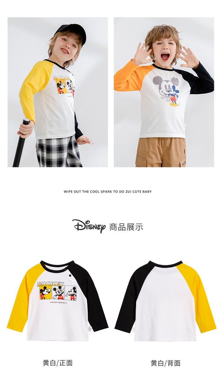 迪士尼童装男童长袖T恤宝宝春秋装新款儿童插肩袖上衣撞色潮221S1682