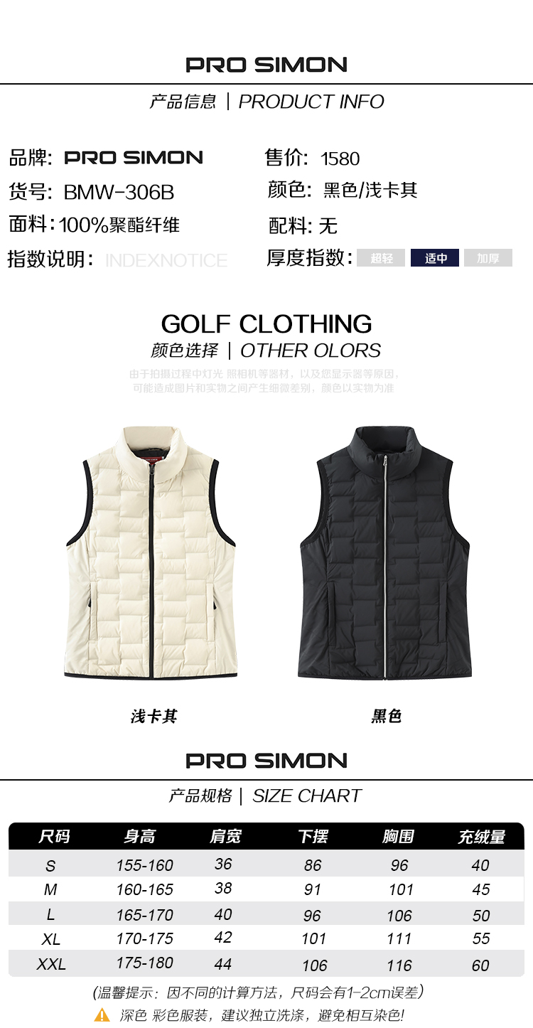 BMW-306B【保暖】 PROSIMON高尔夫秋冬女款无袖运动休闲羽绒马甲