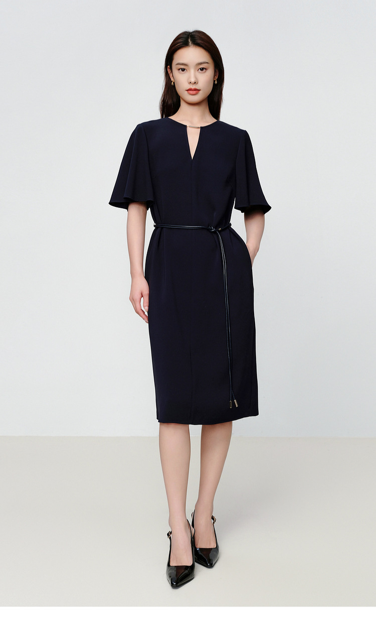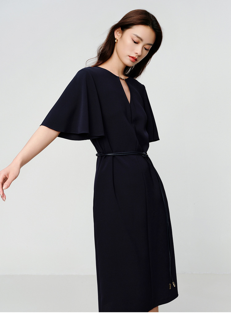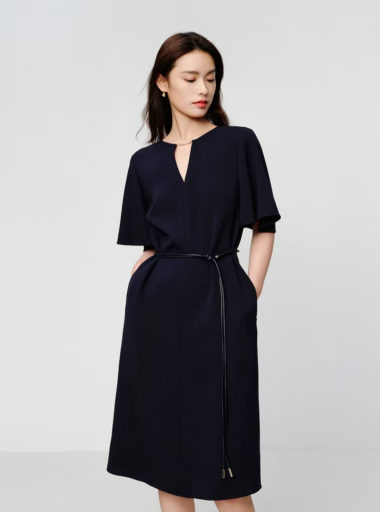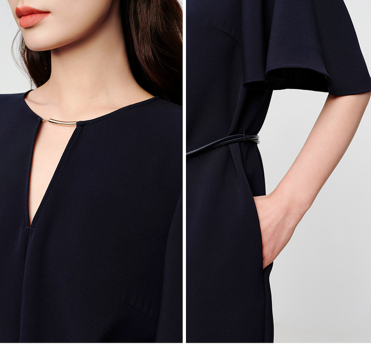V领设计,修饰拉长脖颈线条,风格优雅。