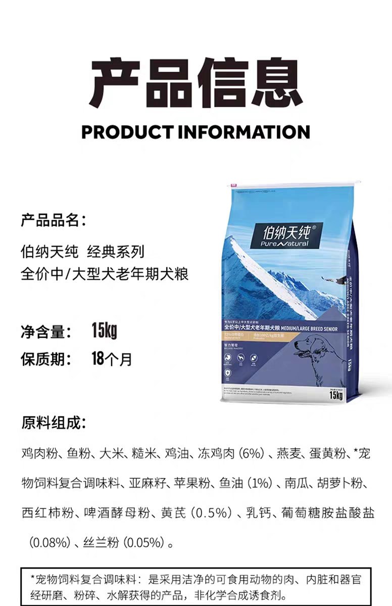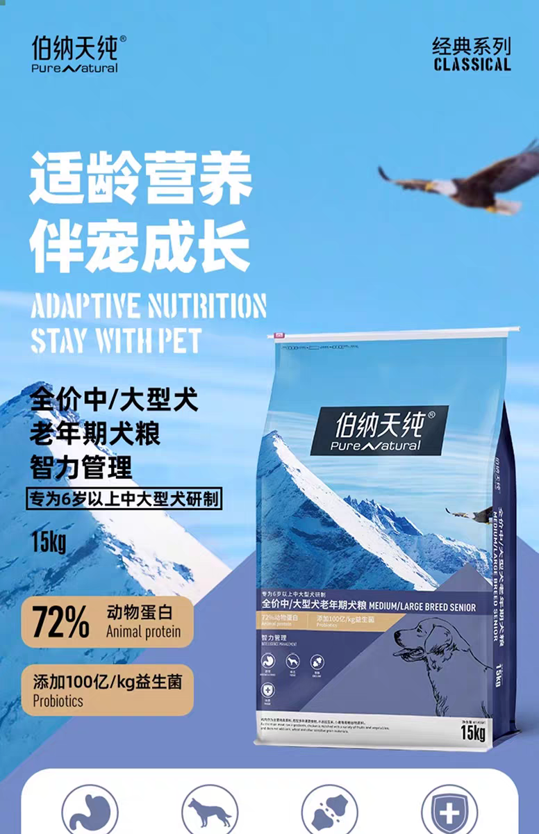 伯纳天纯经典系列中大型犬老年犬高龄犬6岁以上15kg