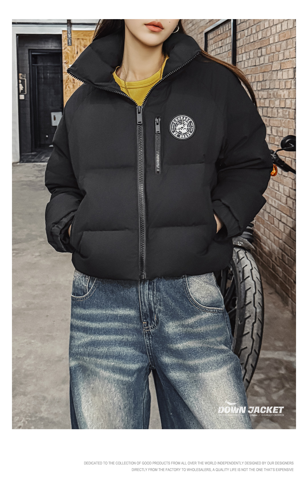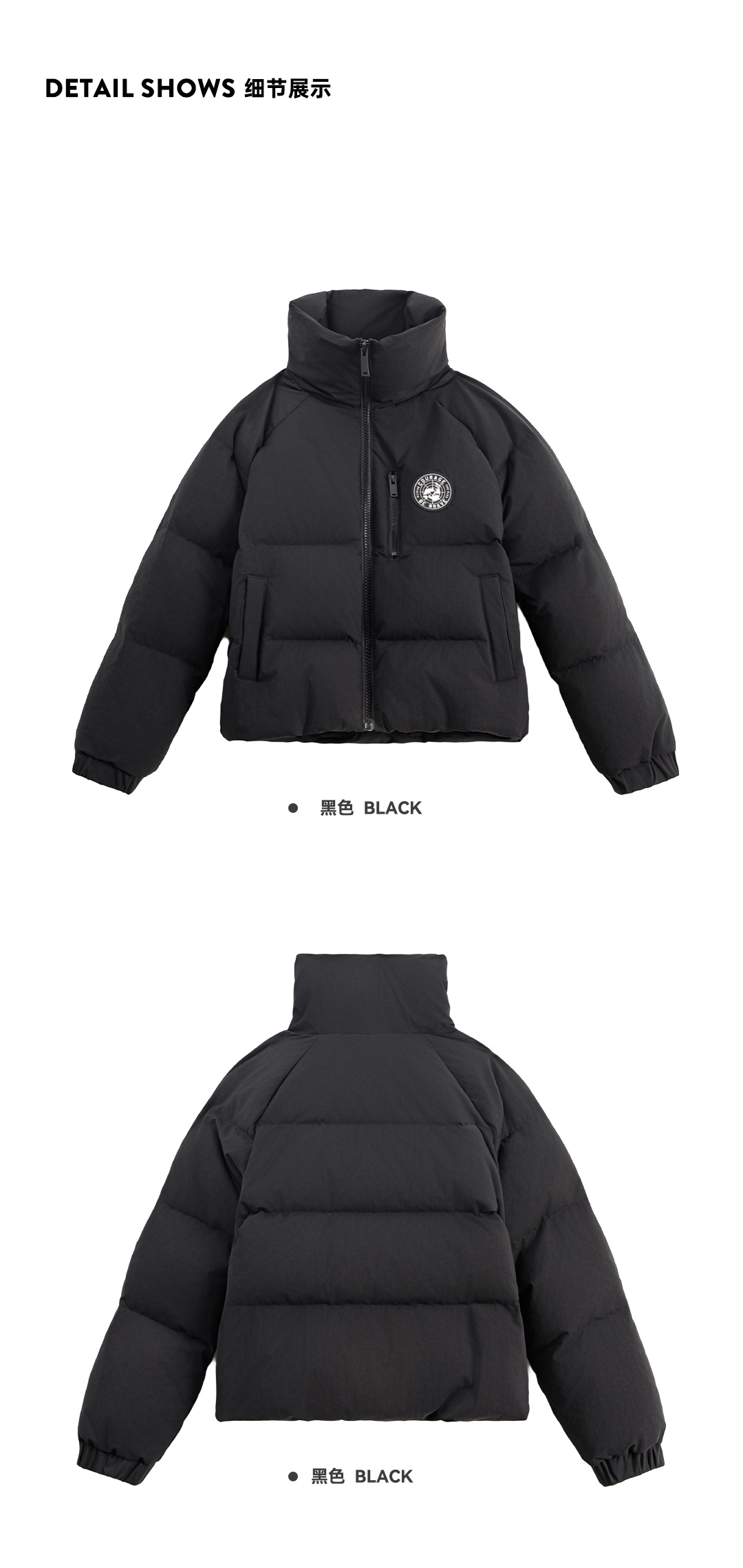 马登黑色90白鸭防钻绒高立翻领短款加厚保暖面包羽绒服外套女士冬