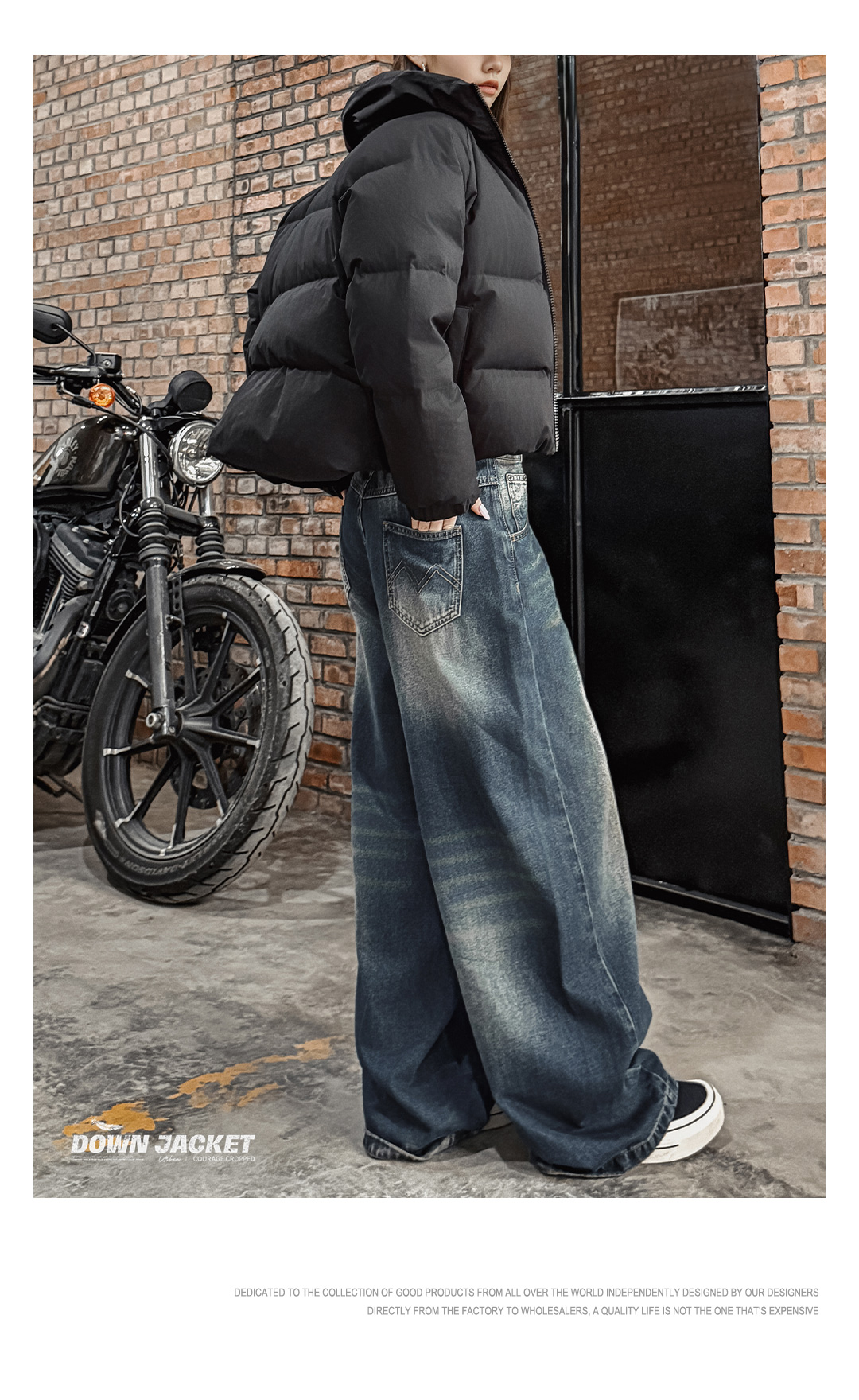 马登工装美式复古水洗弯刀牛仔裤丹宁阔腿垂感拖地休闲长裤子男秋