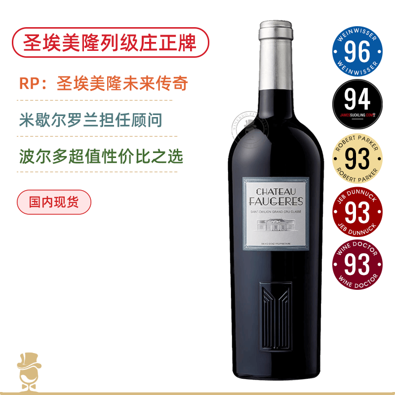 Faugeres的酒园占地37公顷,土壤主要以石灰岩、黏土为主,种植着梅洛、品丽珠和赤霞珠,平均藤龄35年。葡萄经由人工手采后,不锈钢大桶发酵,之后50%新橡木桶熟成14个月,蛋清澄清后装瓶,果香细腻,圆润丝滑。