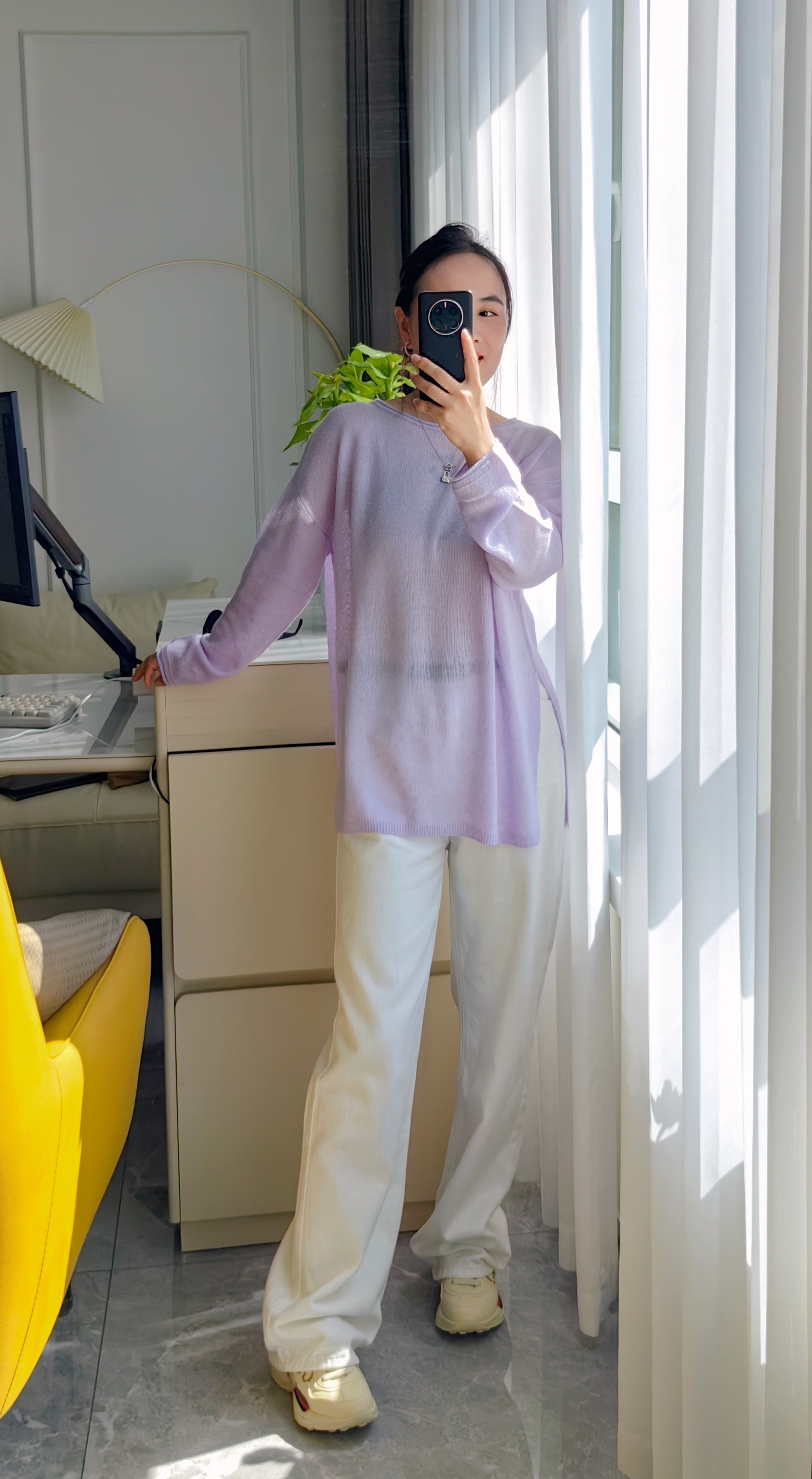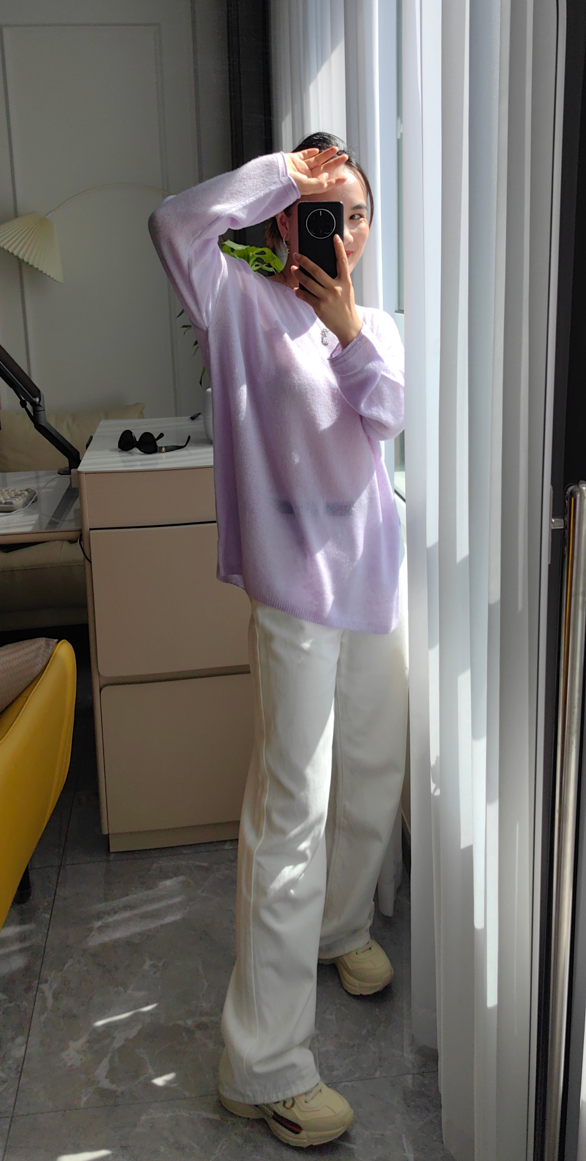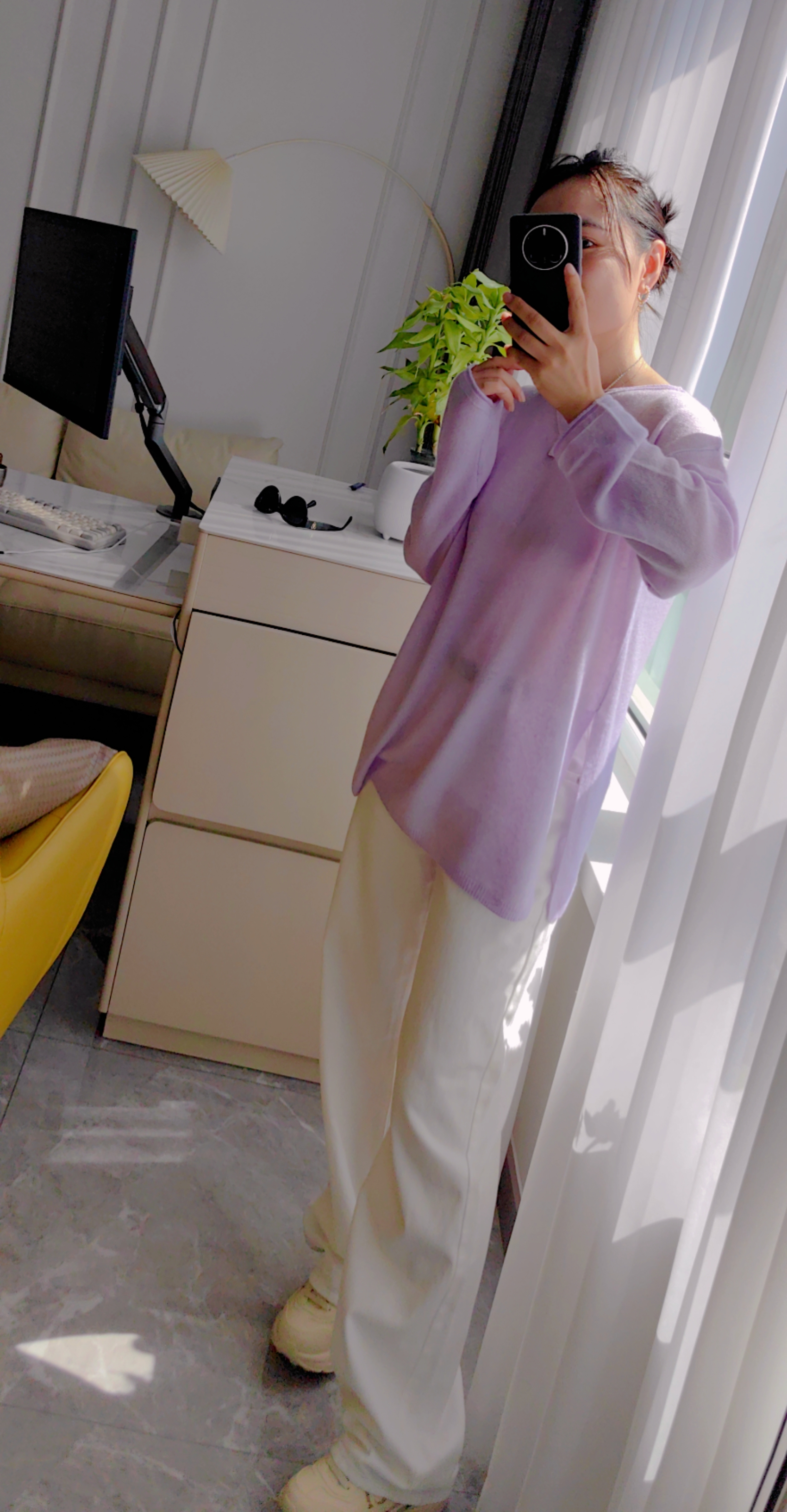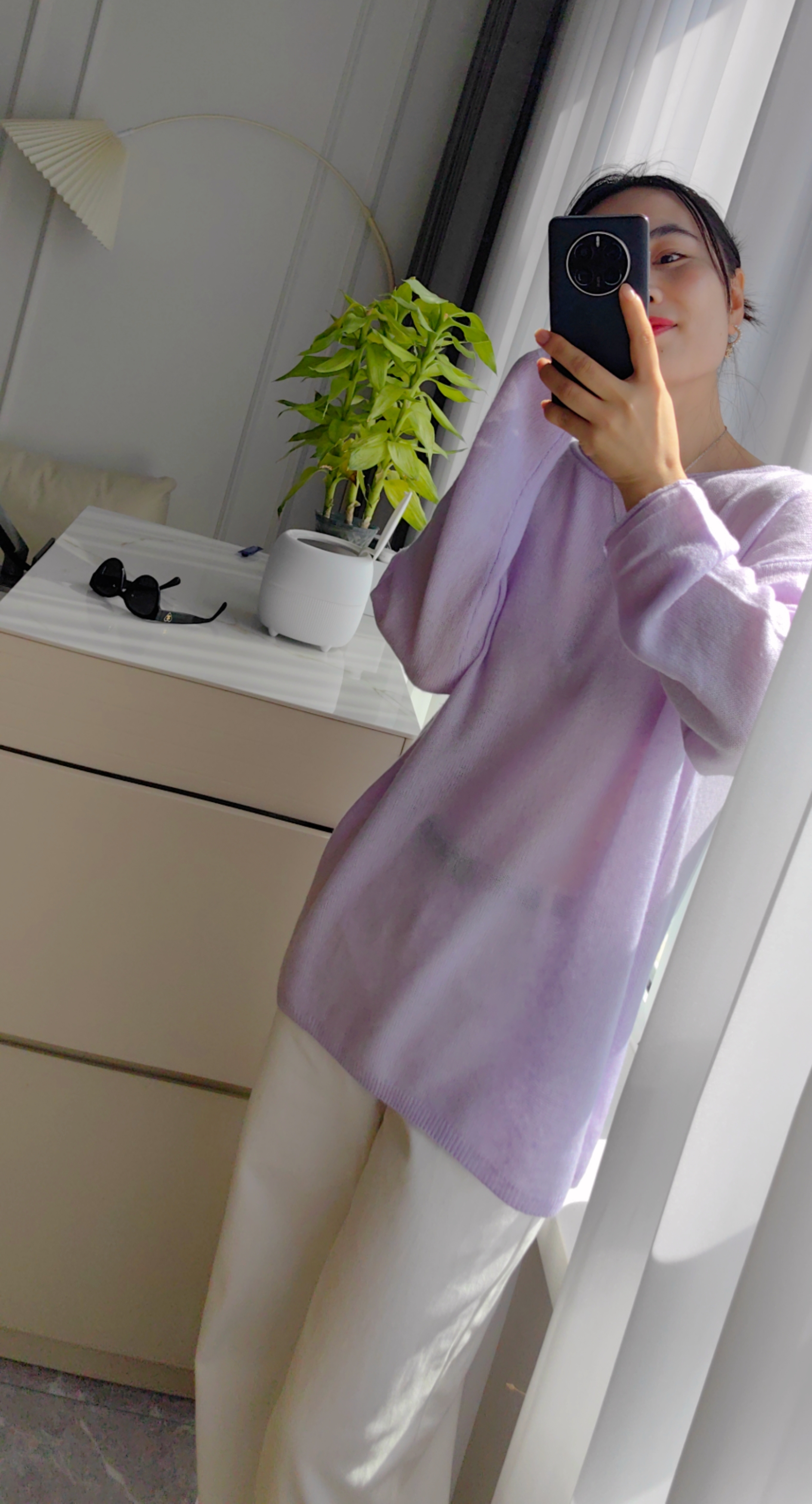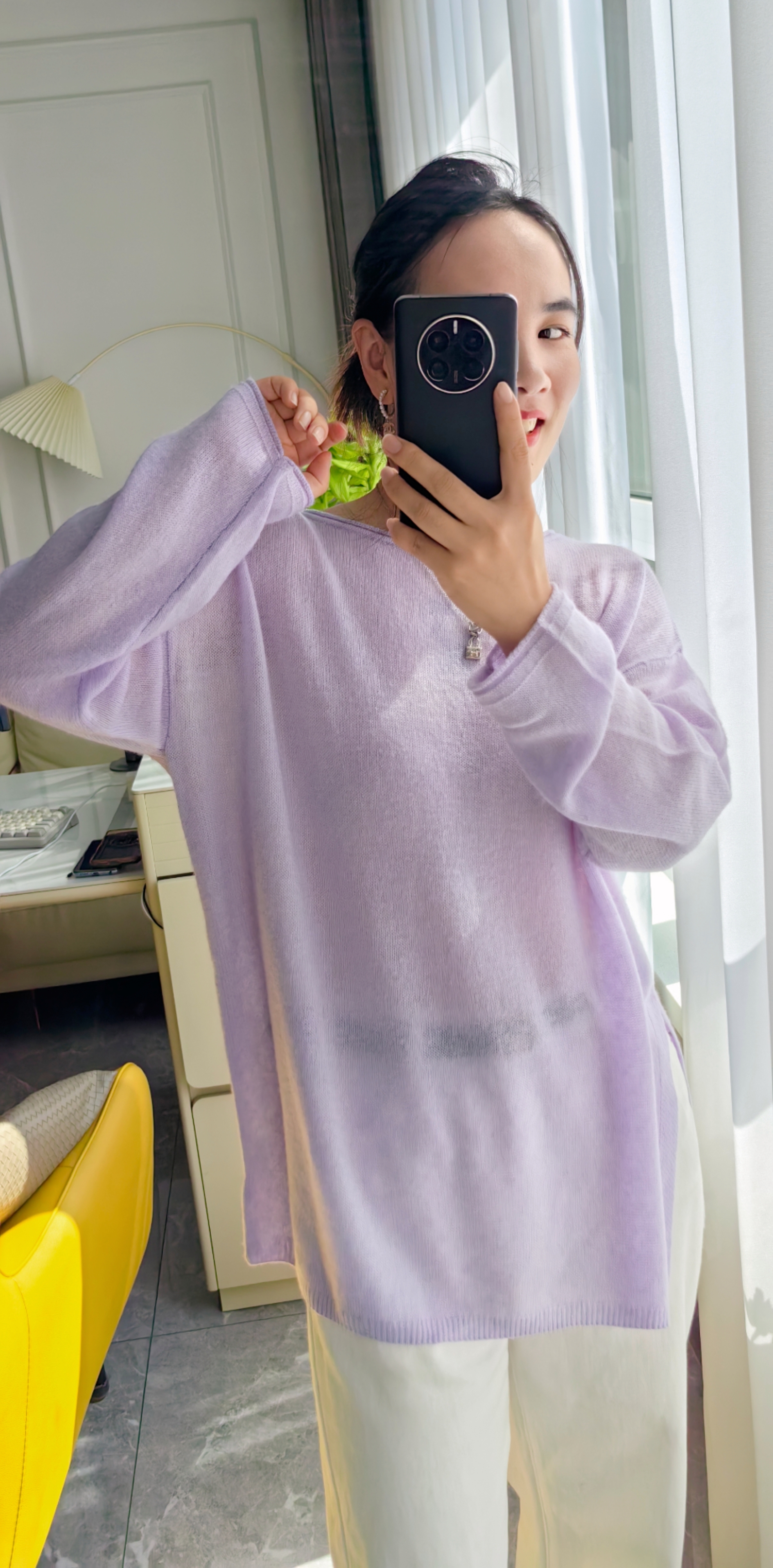 黄金配比亲肤面料,软糯亲肤不扎身,版型盖住臀部,轻盈感如云端,香芋紫花线,如白月光朦胧~温柔又大气~