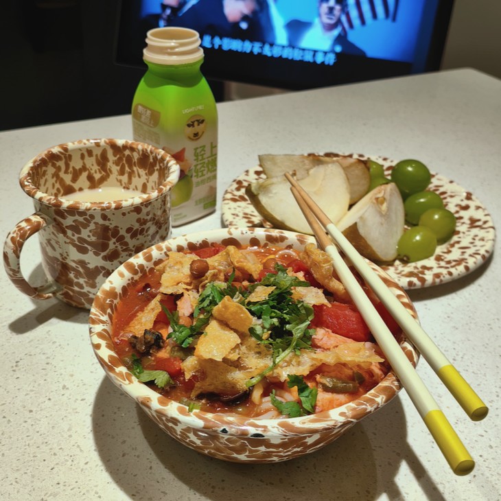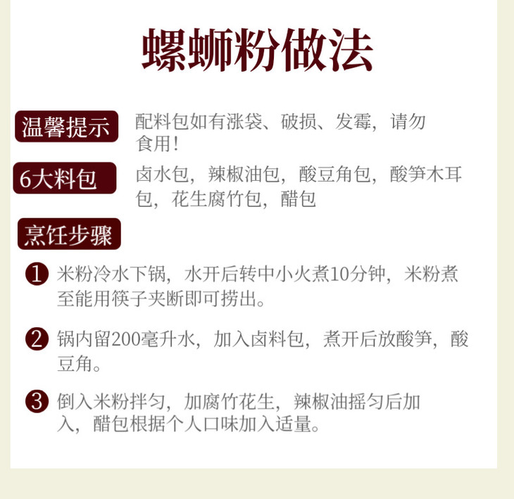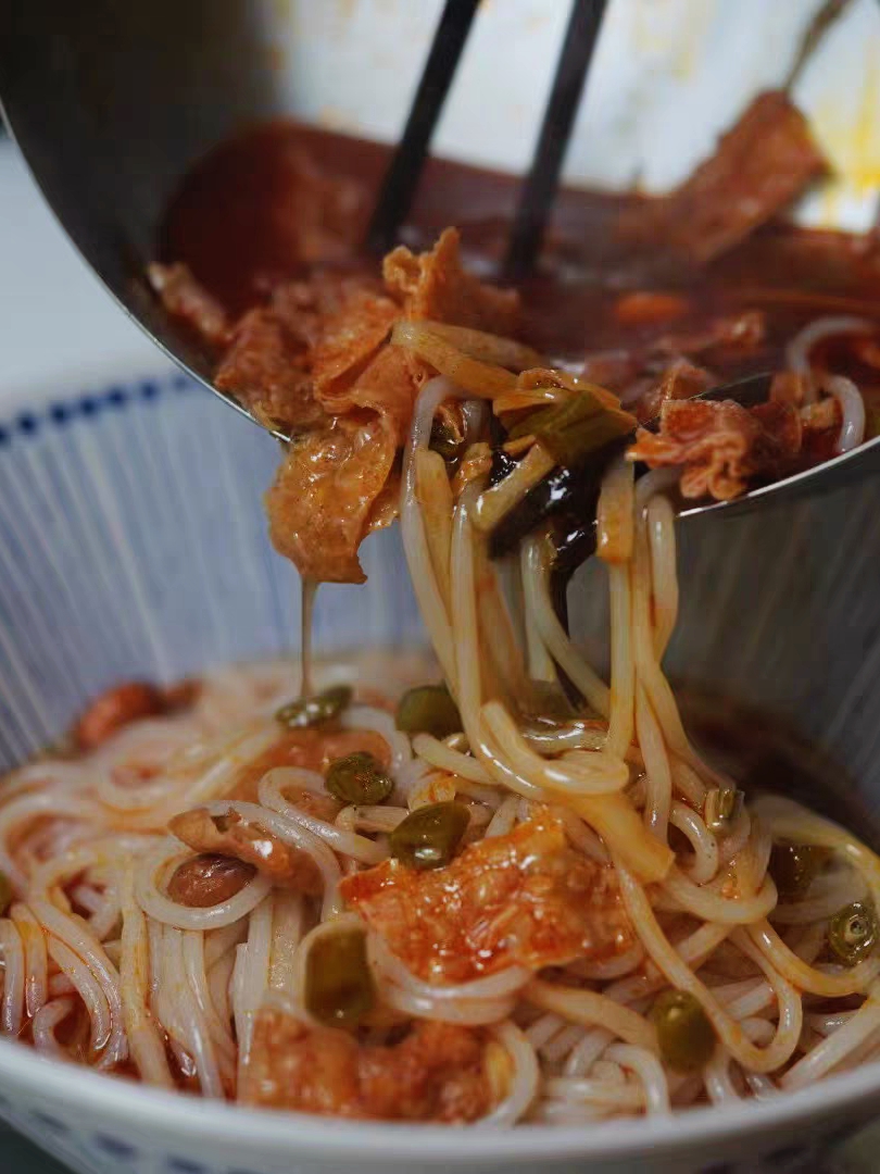 煮起来非常方便,米粉冷水下锅,水开后转中小火煮约10分钟,能用筷子夹断了,就捞出。锅里留适量水,把卤水包煮开,放入酸笋和酸豆角,倒到米粉里拌匀,盖上腐竹花生,再根据个人口味放上辣椒油和醋包就行啦!酸辣过瘾,开胃爽口,夏天吃真的超过瘾!