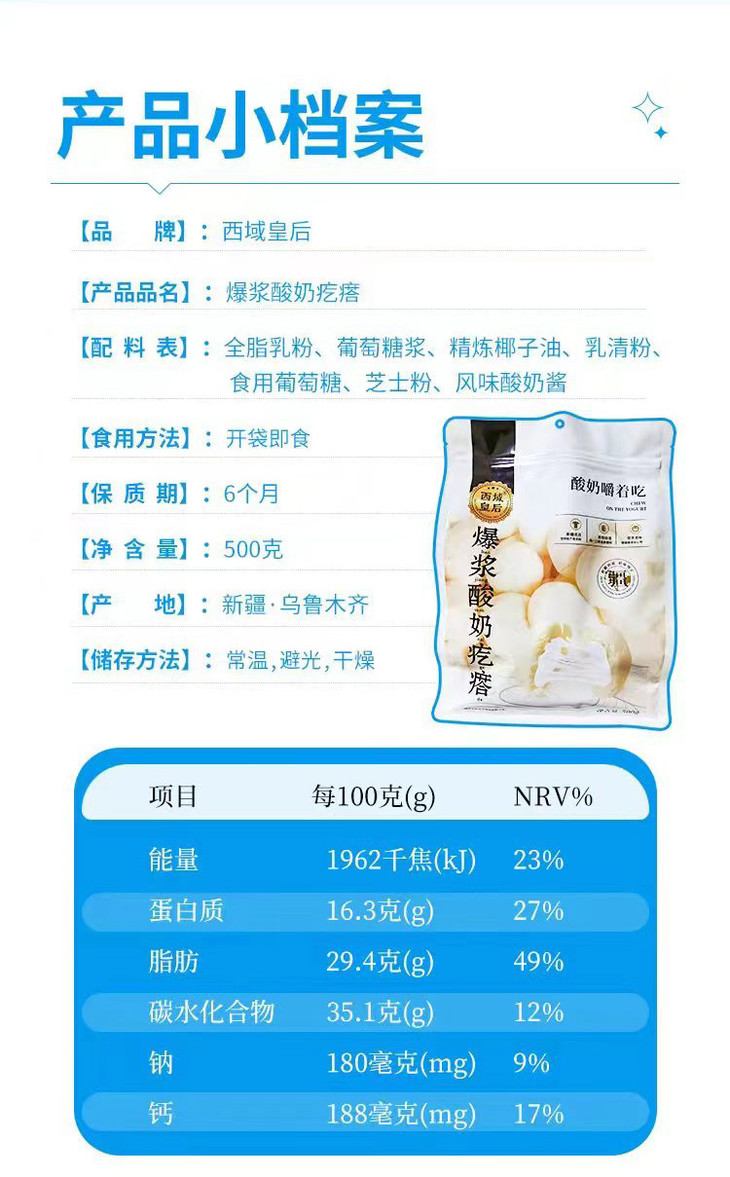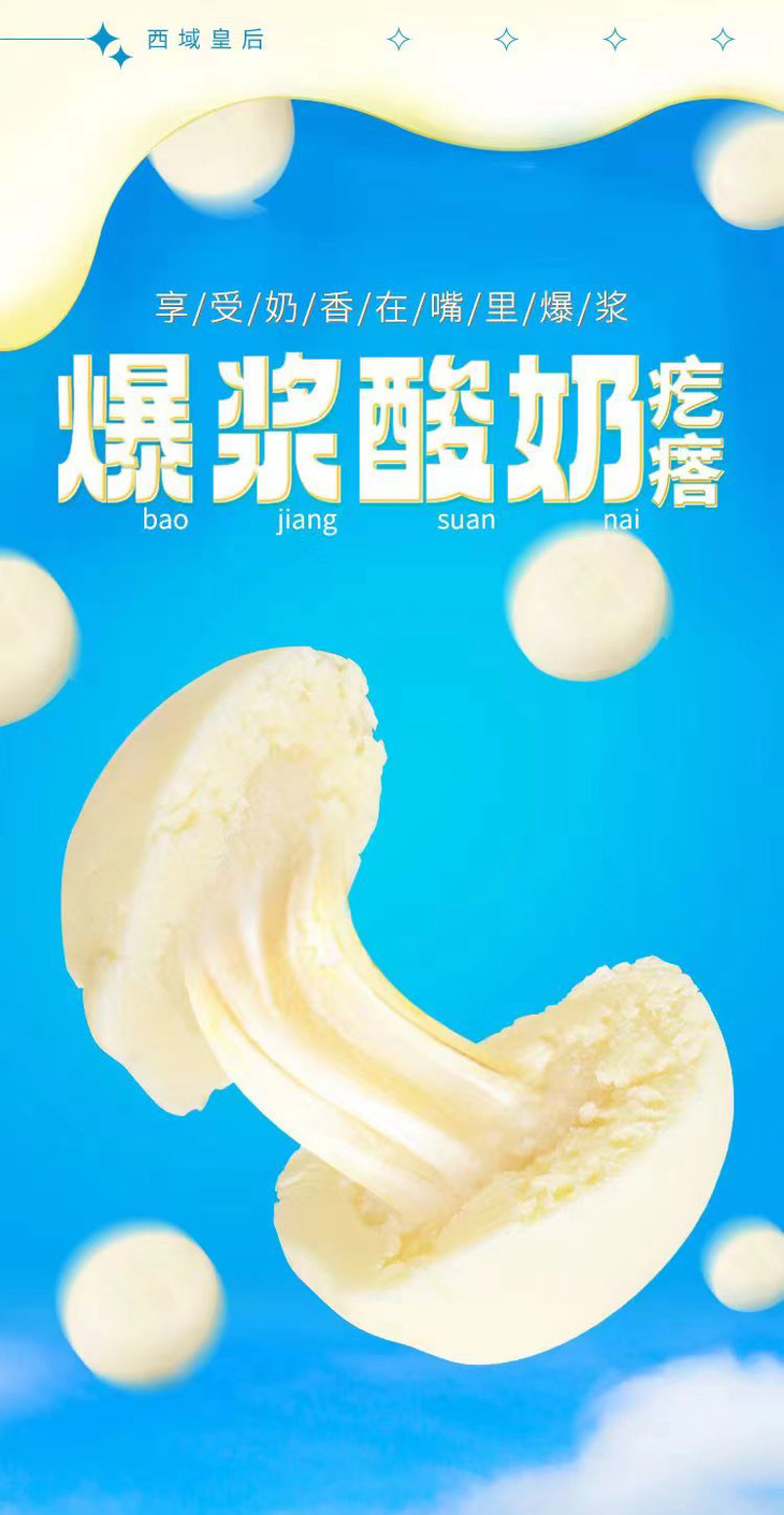 新疆,这片坐落于全球公认的黄金奶源带——南北纬40°至50°间的温带草原性气候宝地,凭借其无与伦比的自然环境,为奶牛提供了得天独厚的生长乐园。广袤无垠的草场、充沛的阳光照耀、显著的昼夜温差以及清澈丰富的水源,共同编织出奶牛的天堂,从而确保了奶源的纯净与卓越。西域皇后的爆浆酸奶疙瘩,正是来自这片神奇土地上的优质牧场奶源,其外皮,用的是鲜奶炼制的奶油,质地细腻,奶香扑鼻;而内馅,则是地道的新疆酸奶,醇厚浓郁,酸甜适中,仿佛将整个草原的精华都凝聚其中。