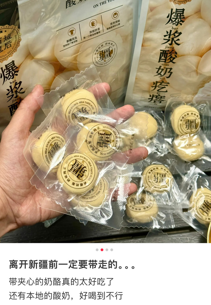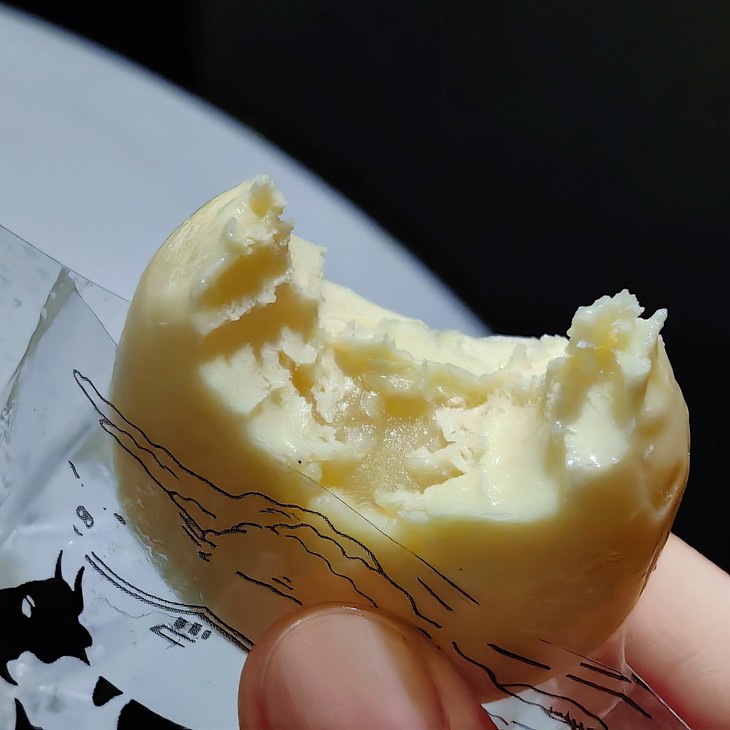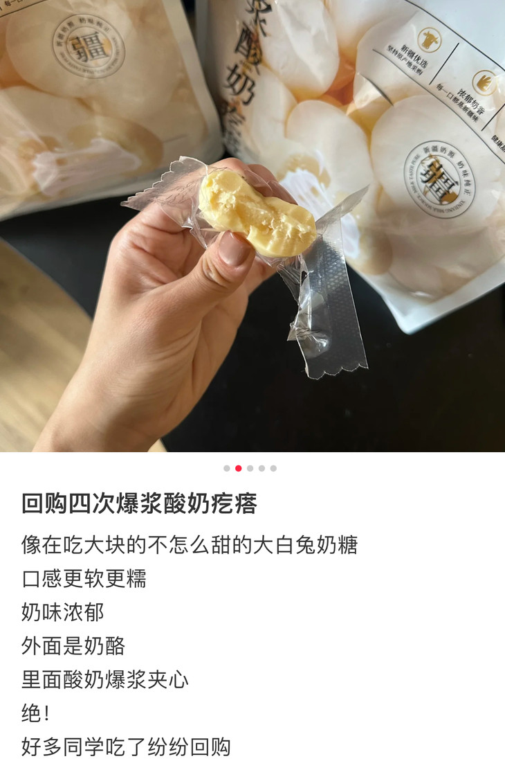 每一颗爆浆奶疙瘩,都被精心包裹在独立小包装里,很方便扔包包里,随时分享。撕开小袋子,里面就是圆滚滚的诱人奶蛋子。一口咬下,绵密香甜,再里面是满满酸奶流心,丝滑细腻,奶香四溢,又带着酸奶特有的酸甜滋味,两者相互衬托,恰到好处,既不过分甜腻,也不失清爽!绝对绝对不能错过,比那些贵贵的奶酪好吃多了!
