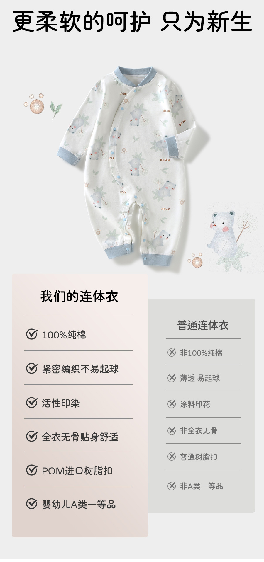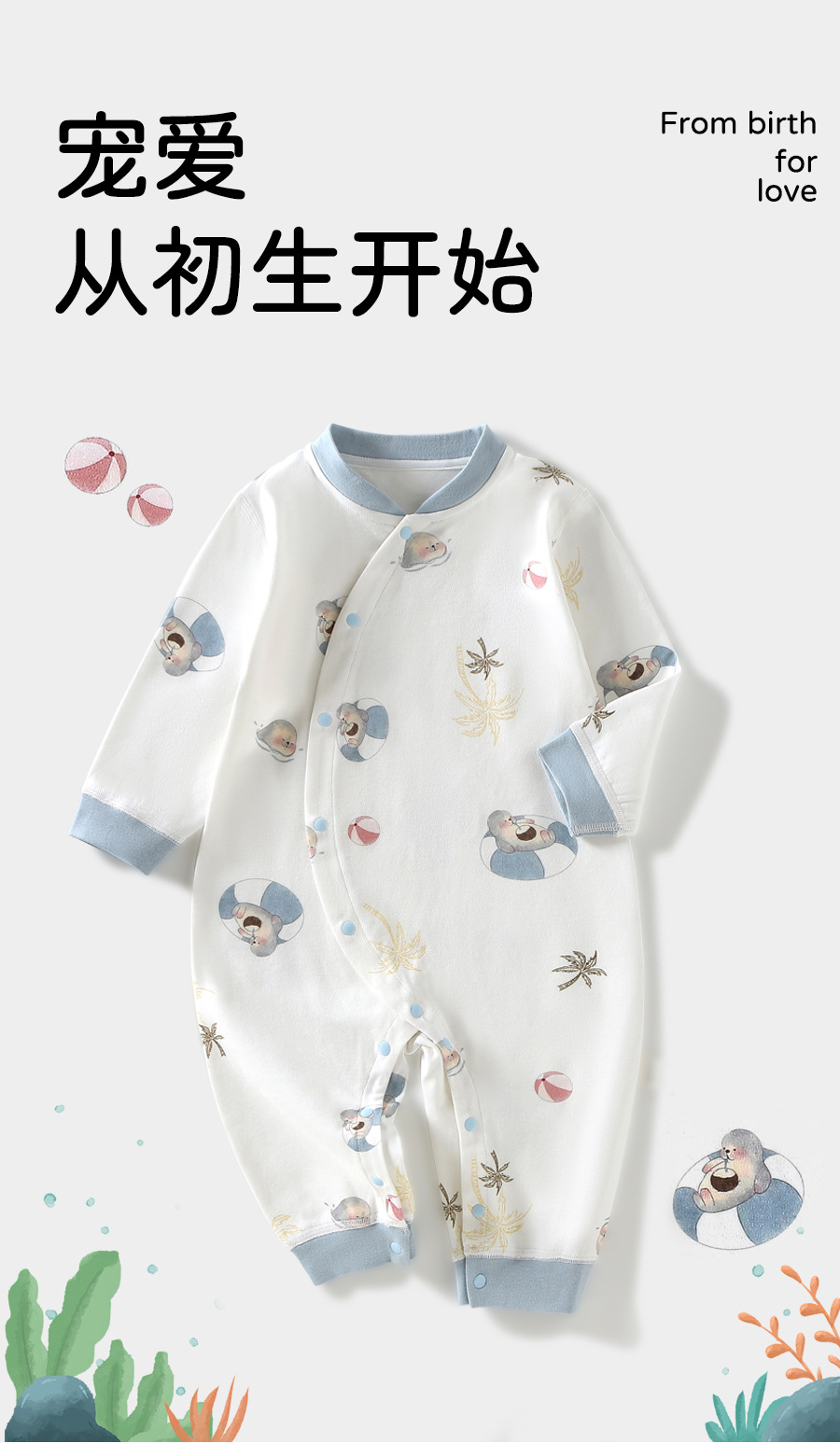 【宠爱从初生开始】宝宝衣服A类纯棉无骨和尚服春满月哈衣婴儿爬爬服秋新生儿连体衣