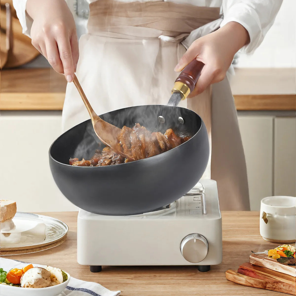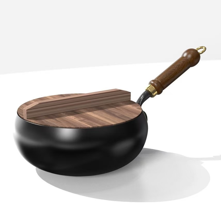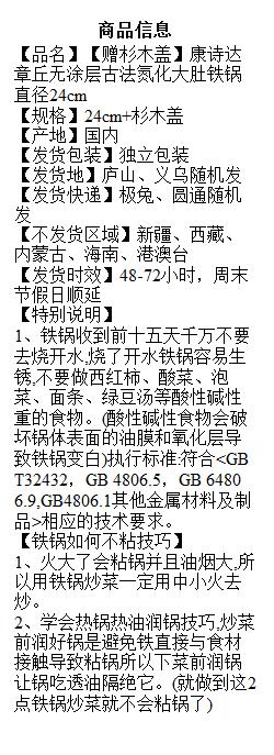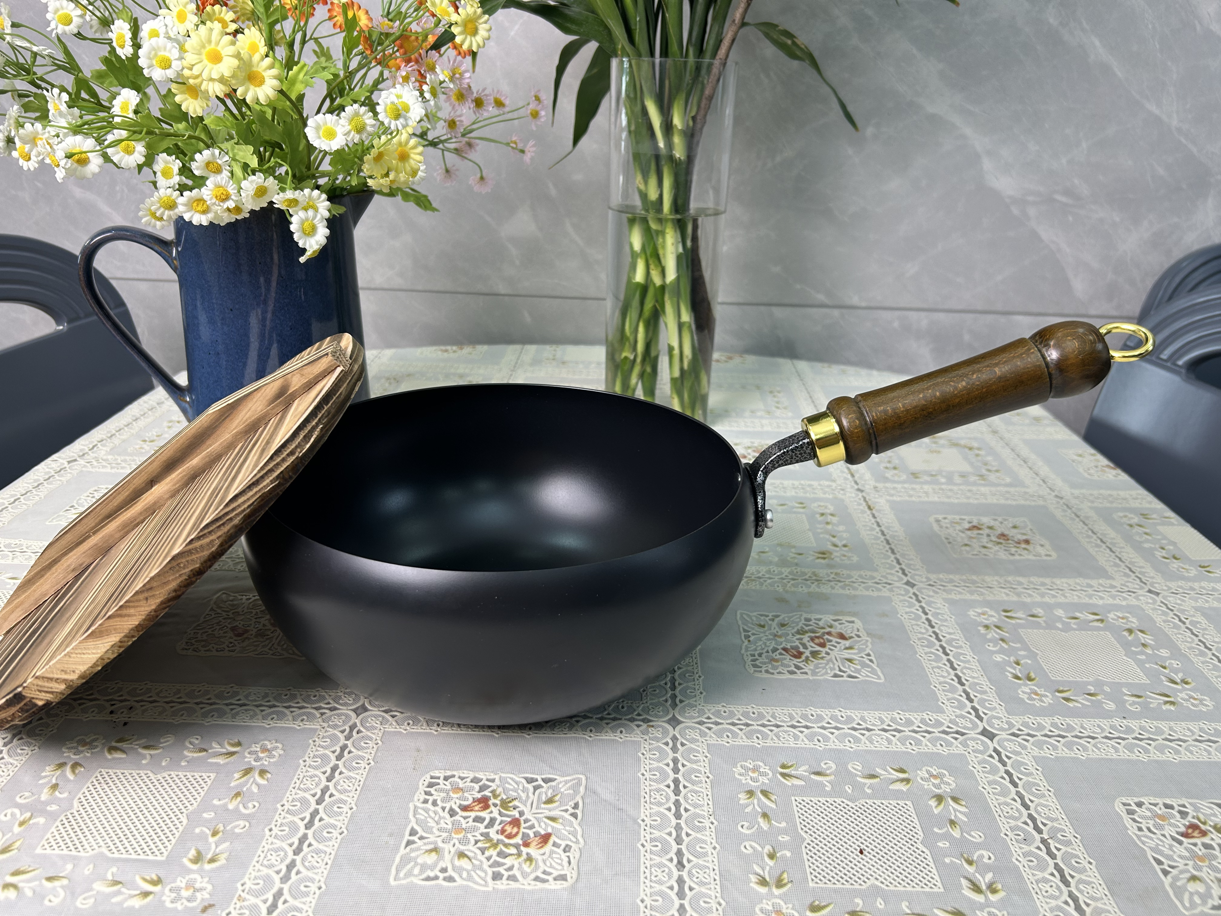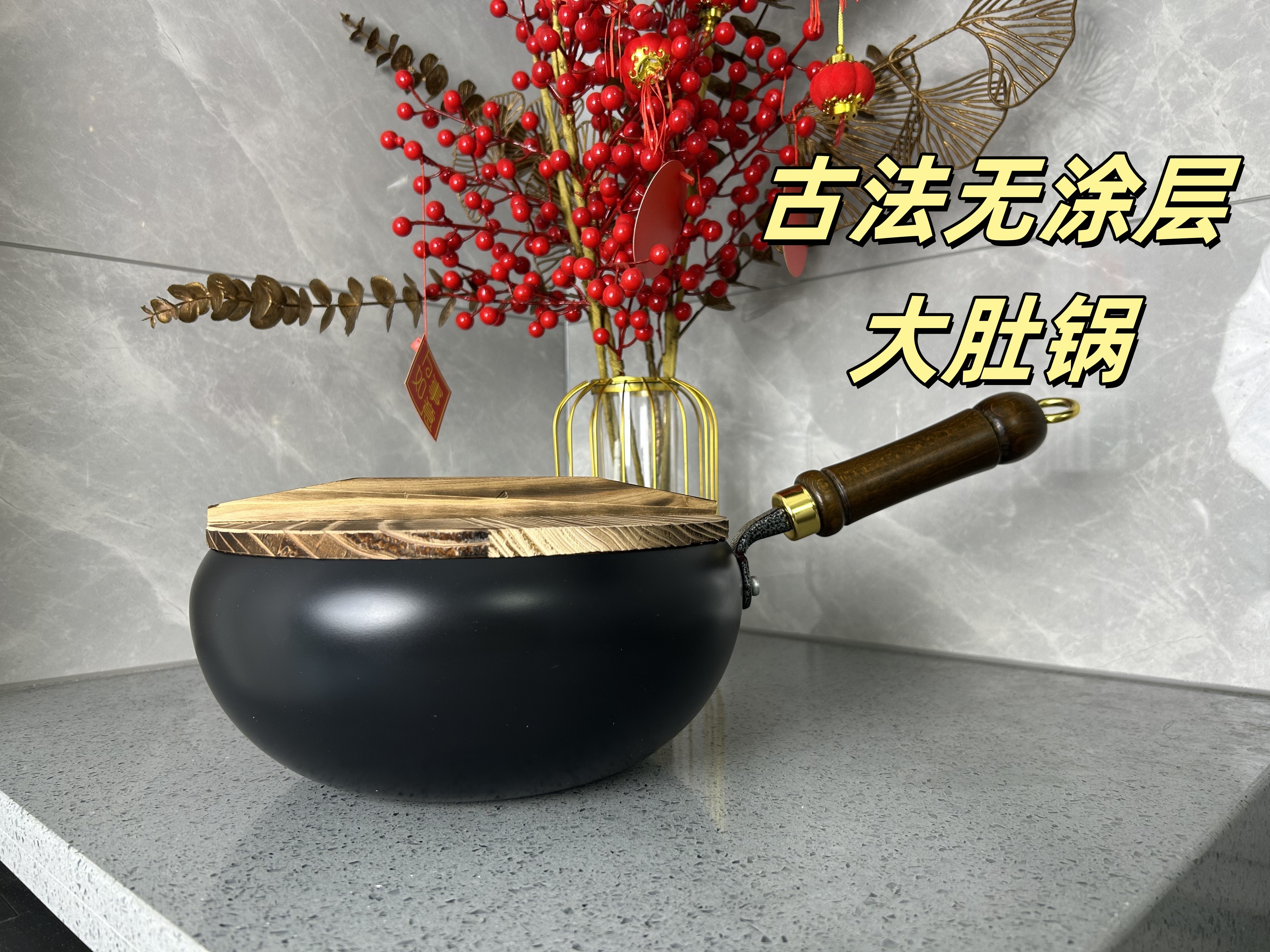 热卖!不粘锅、不溅油!【赠杉木盖/玻璃盖】康诗达 章丘无涂层古法氮化大肚铁锅 与辉同行同款式!