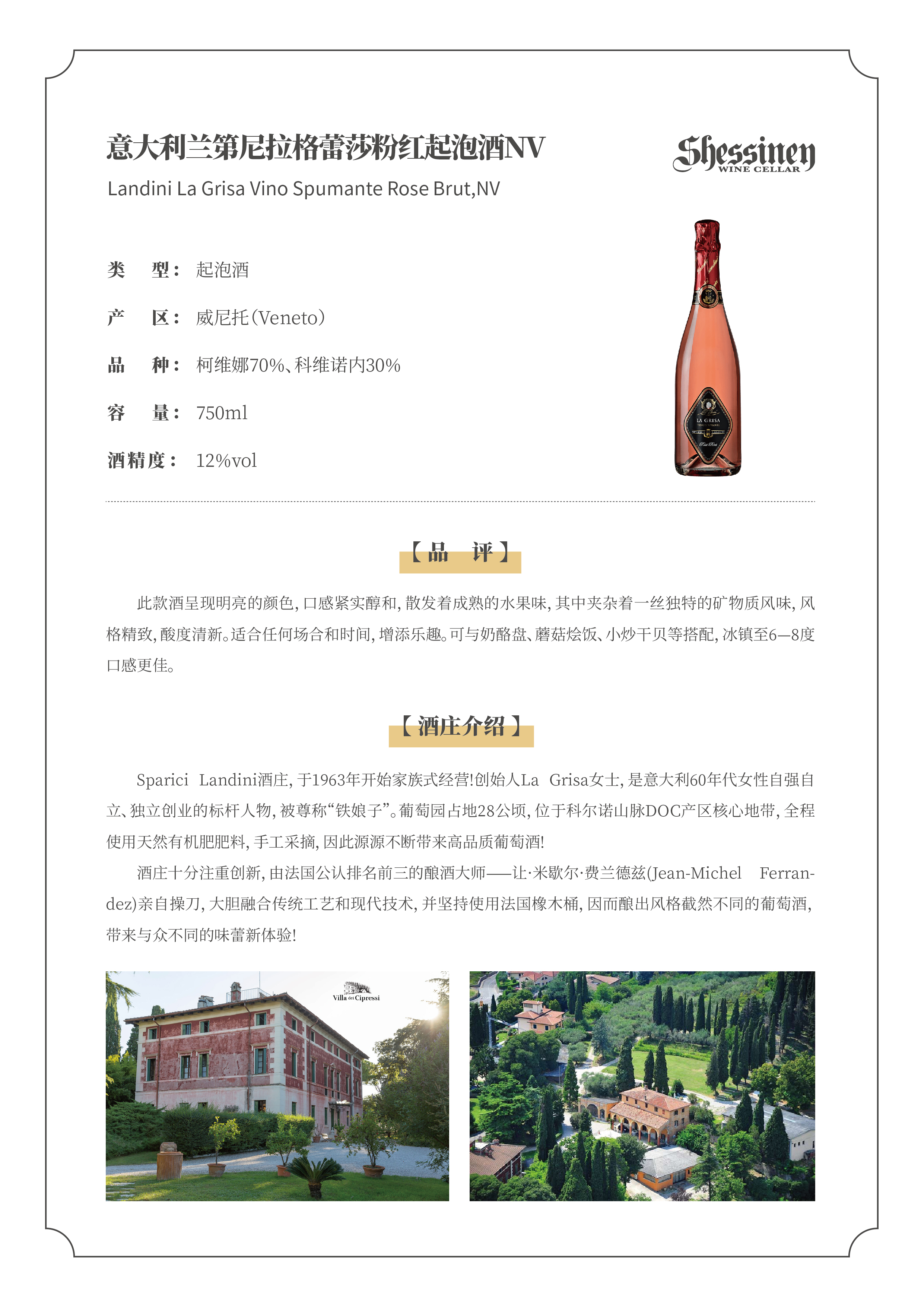 意大利兰第尼格拉蕾莎粉红起泡酒