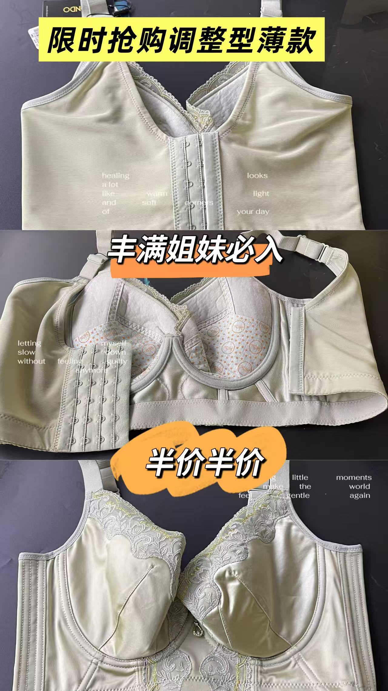 迪兰多调整内衣女大胸薄杯聚拢防下垂软钢圈六排扣侧收定型固脂文胸2118159