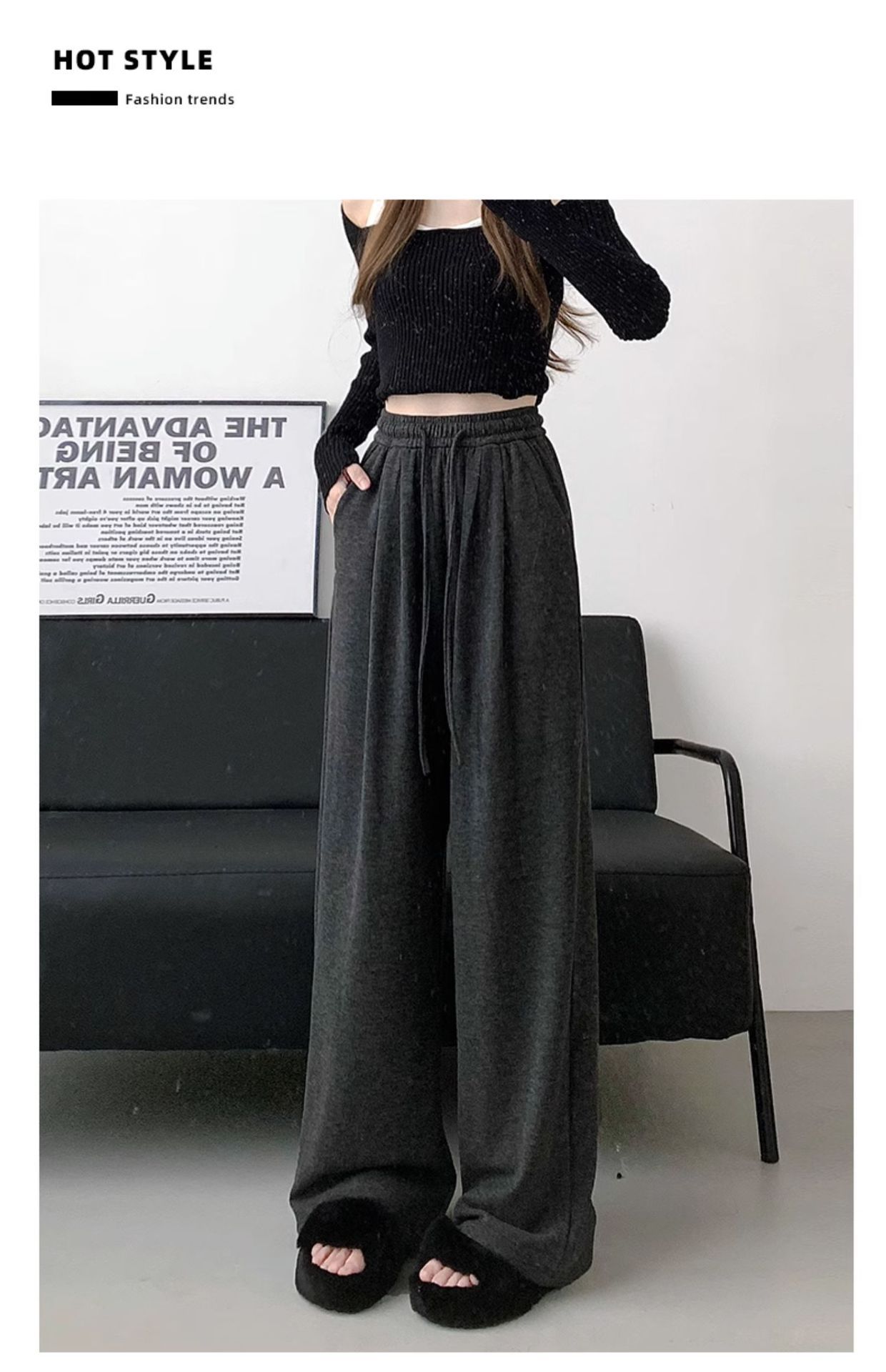 【慵懒舒适即视感!舒适Hot糯米裤】#显瘦又显高#舒适有型秒变大长腿,面料手感细腻,耐磨柔软修饰腿型多色可选,高腰垂感直筒休闲裤,百搭日韩风糯米裤L