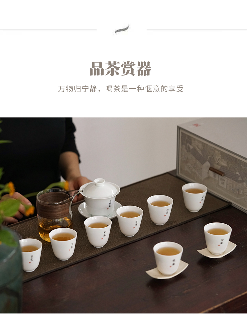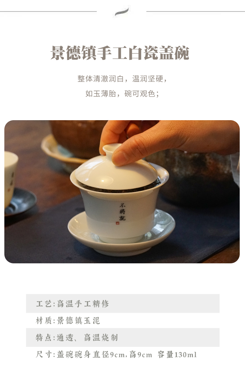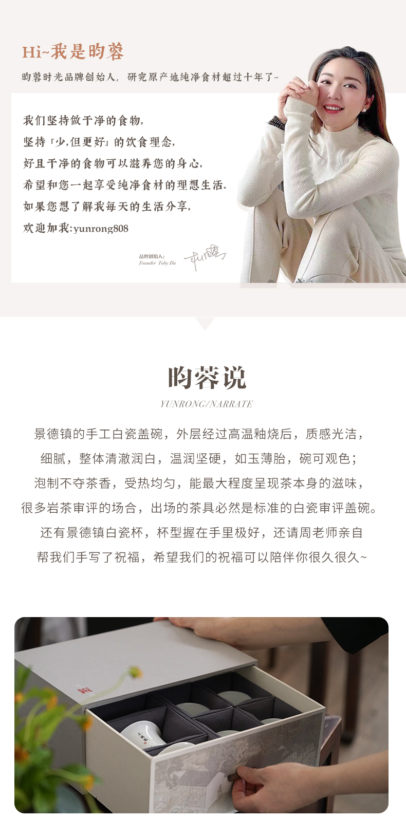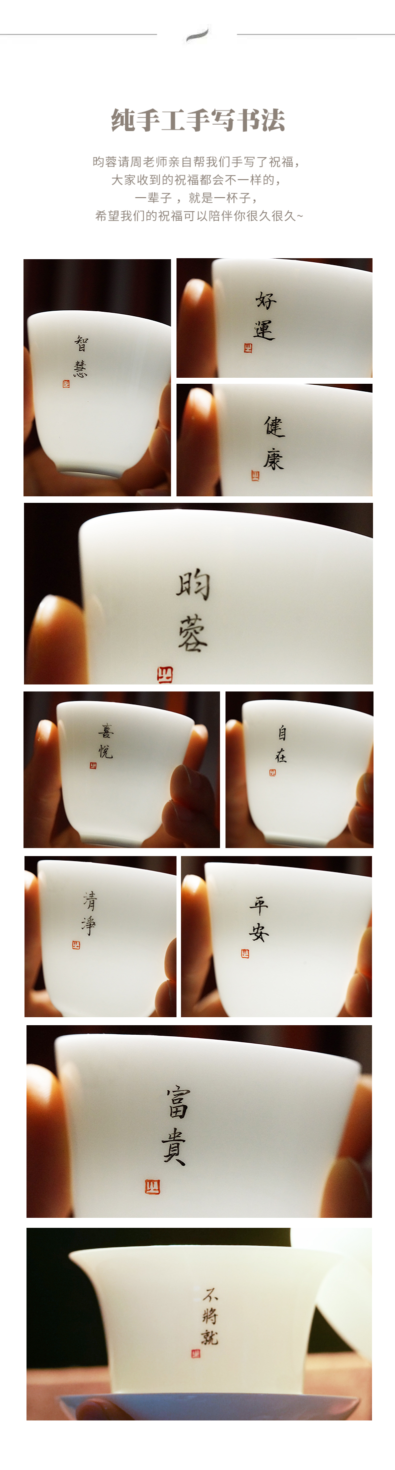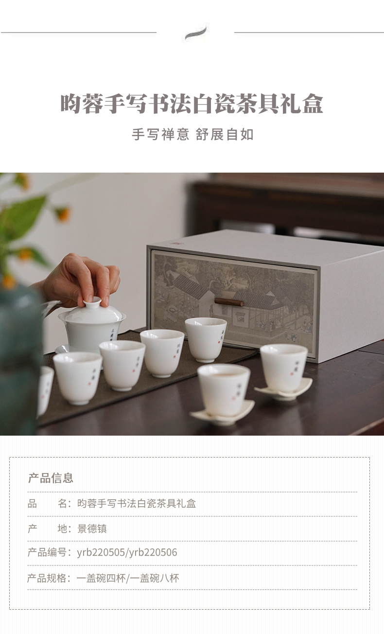 【 昀蓉·定制周边】景德镇手写字白瓷茶具礼盒(薄胎白瓷盖碗+定制白瓷杯) · 独家定制手工写字 · 整体清澈润白 · 温润坚硬 · 质感光洁 · 细腻如玉